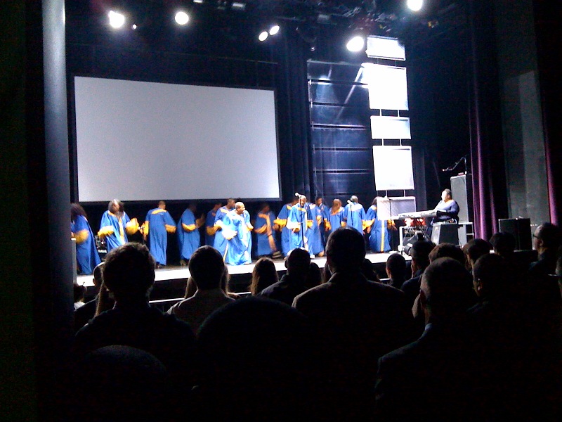 He brought the Crenshaw choir, band and dance team with him! They were awesome. So talented. I particularly loved the stomp numbers. đ