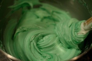 The frosting is lovingly piped on using a pastry bag.