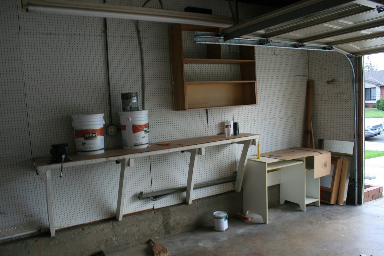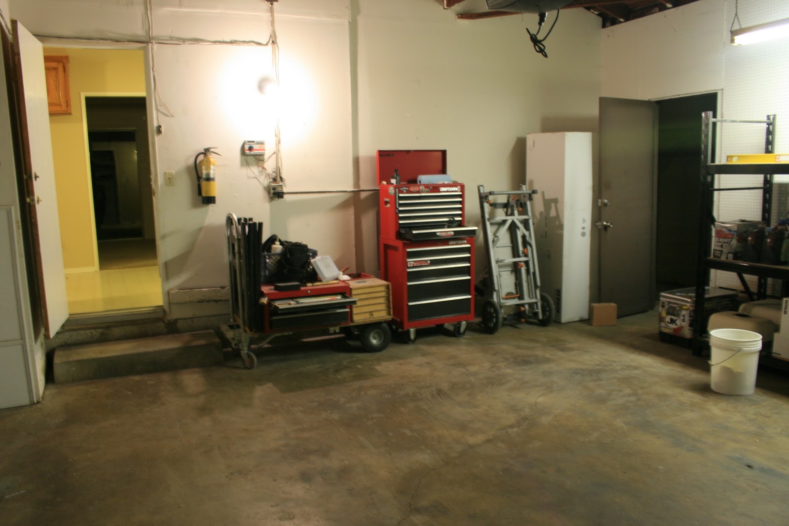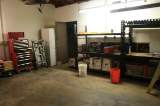 We went to the new house last night. We changed the locks and cleared out the garage. J started to put some of his tools in there and set up some shelving…well see for yourself!