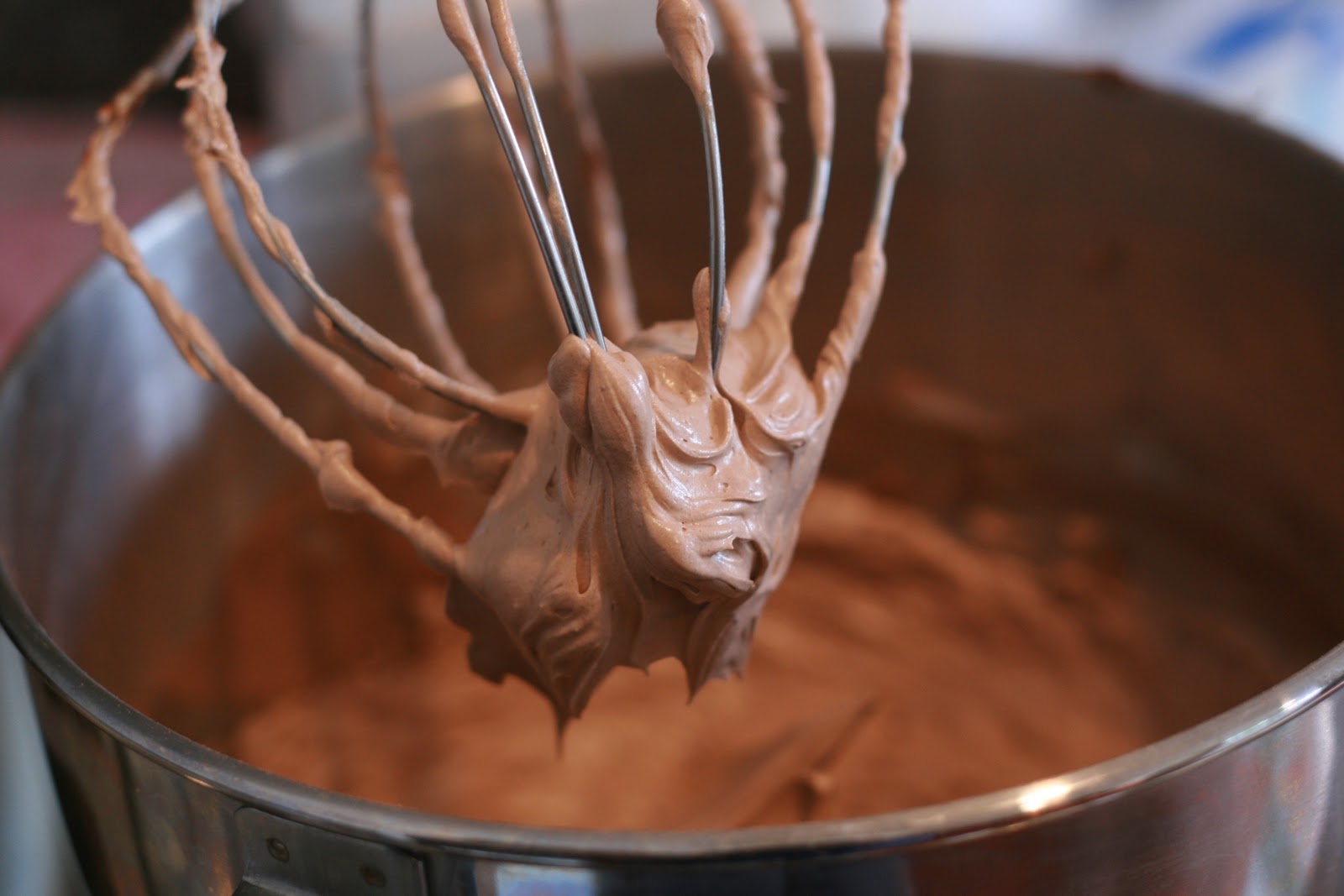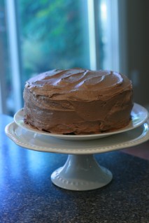 Notes on the frosting: since it’s mostly butter, it can do great things. For example, I frosted a “crumb coat” first, then refrigerated that, then actually frosted the cake. You can refrigerate the frosting and it will set. If you refrigerate it in the bowl, remember to let it sit at room temperature and then whip it up again when you’re done. I do not recommend making this without the aid of a Kitchen Aid or other stand mixer.