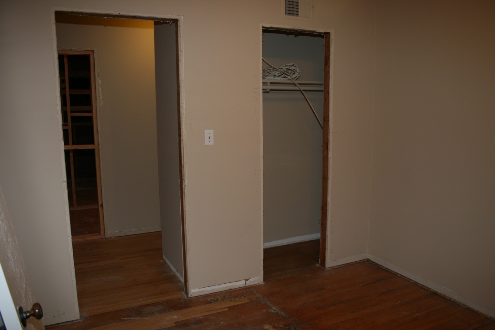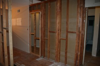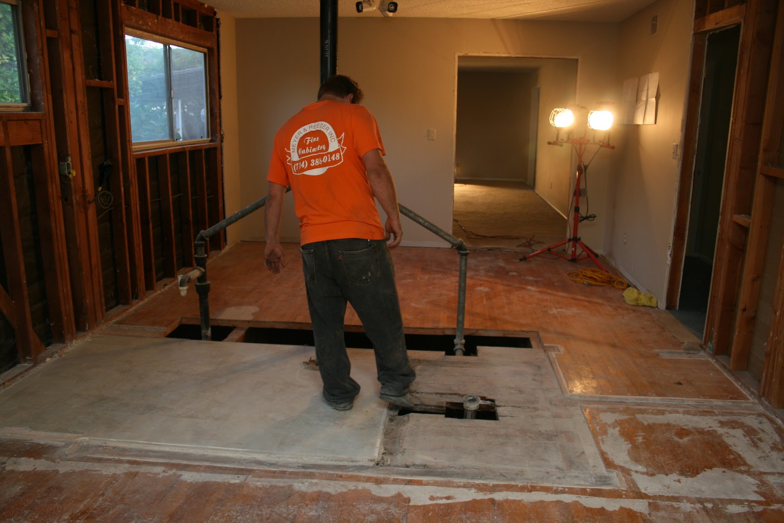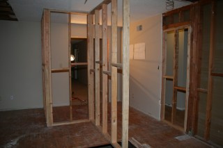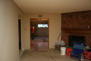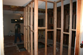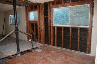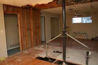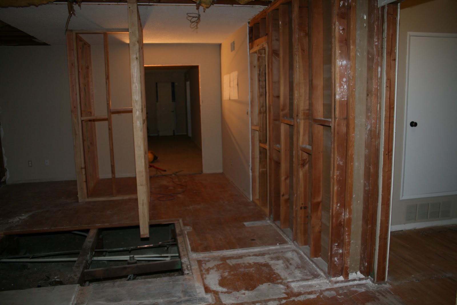I took this standing in what was once our master bedroom, the pipes were the in the wall between the master bath and bedroom #4 (which is being combined into the master suite) and the doorway straight ahead leads into the living room.