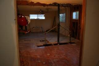 Plumbing in the middle of the room is about to be torn down…
