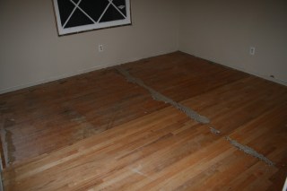 Some of the wood flooring seems to be in good shape, but because they glued the padding to it…who knows?