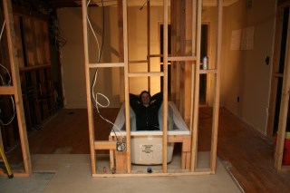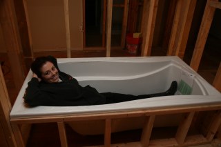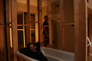 | Linda brought some pictures from when we were renovating the condo. If you look closely (or click to enlarge), we’re doing the “American Gothic” pose. hehe. |