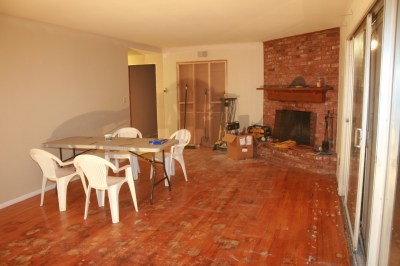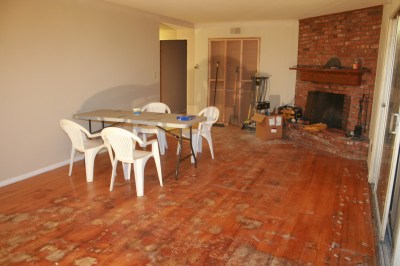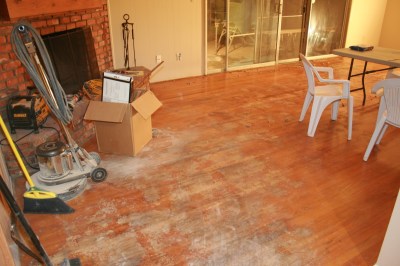 | This hasn’t been sanded yet; we pulled up the living room carpet and it was pretty ugly underneath. |