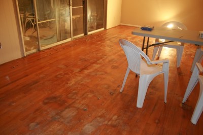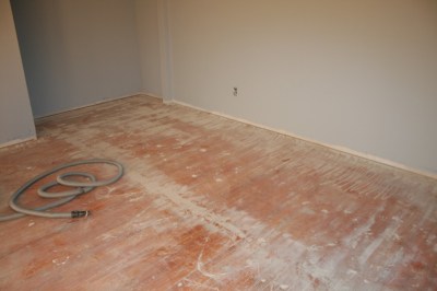 Well I had hoped that we could salvage the wood flooring that was underneath the carpet in our new house. We pulled up the carpet, and some of the floor looked good. I thought it would sand nicely, but it didn’t. 😦