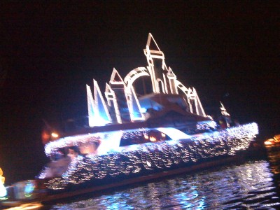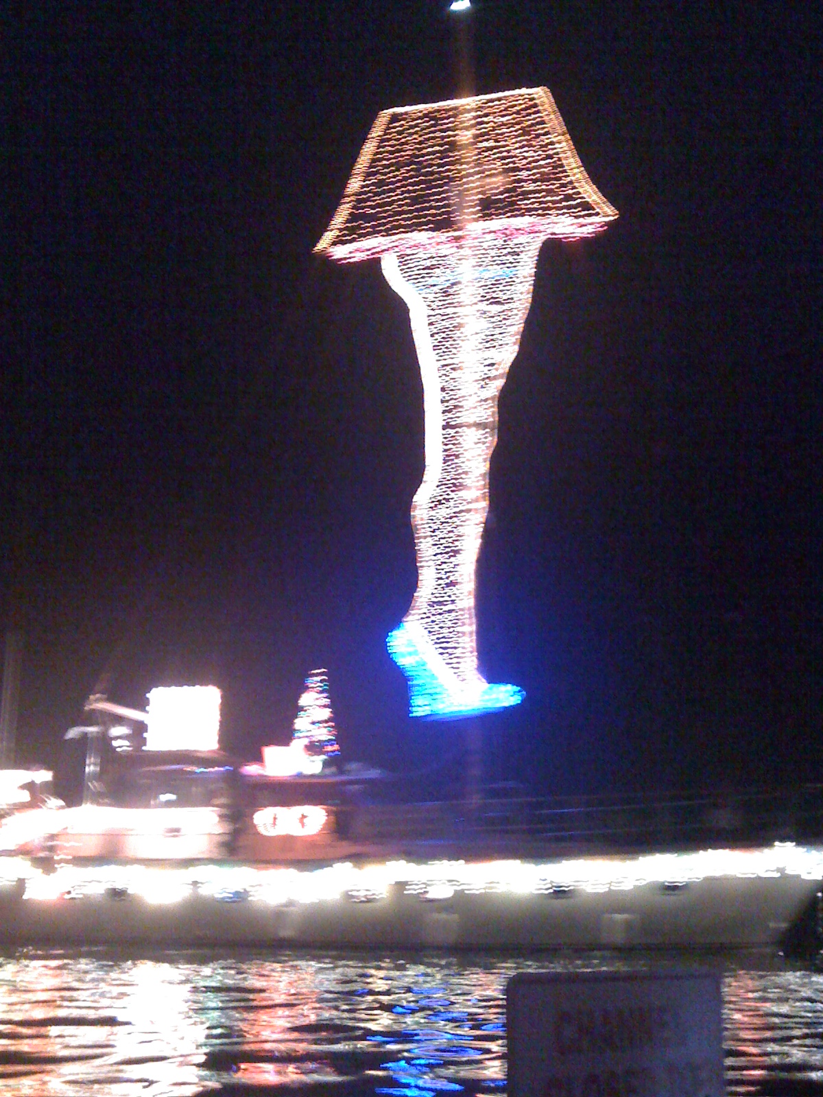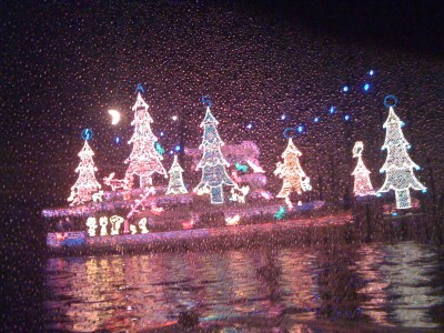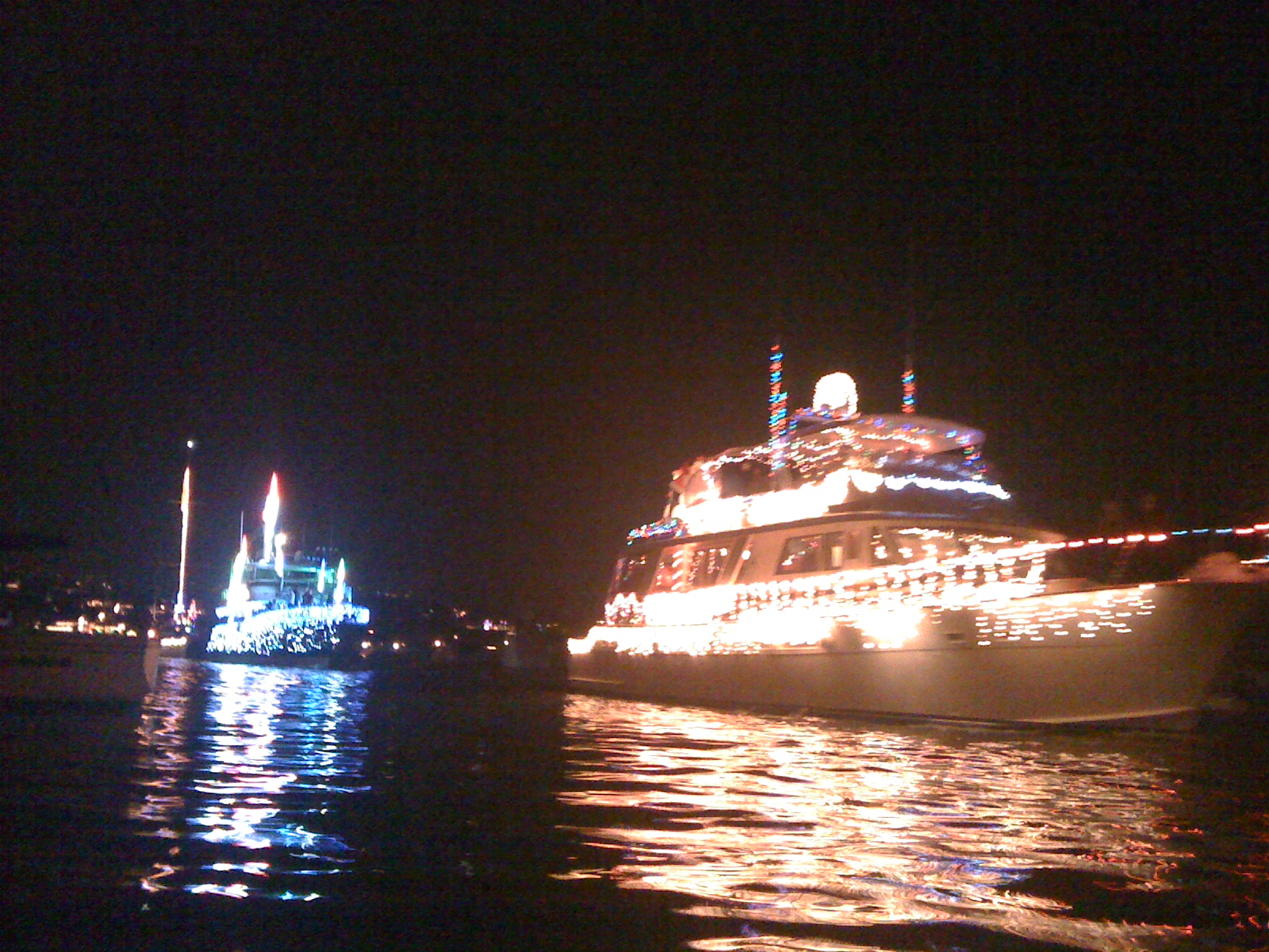 The rain didn’t stop us…we enjoyed the lights from a boat in the harbor on Sunday…