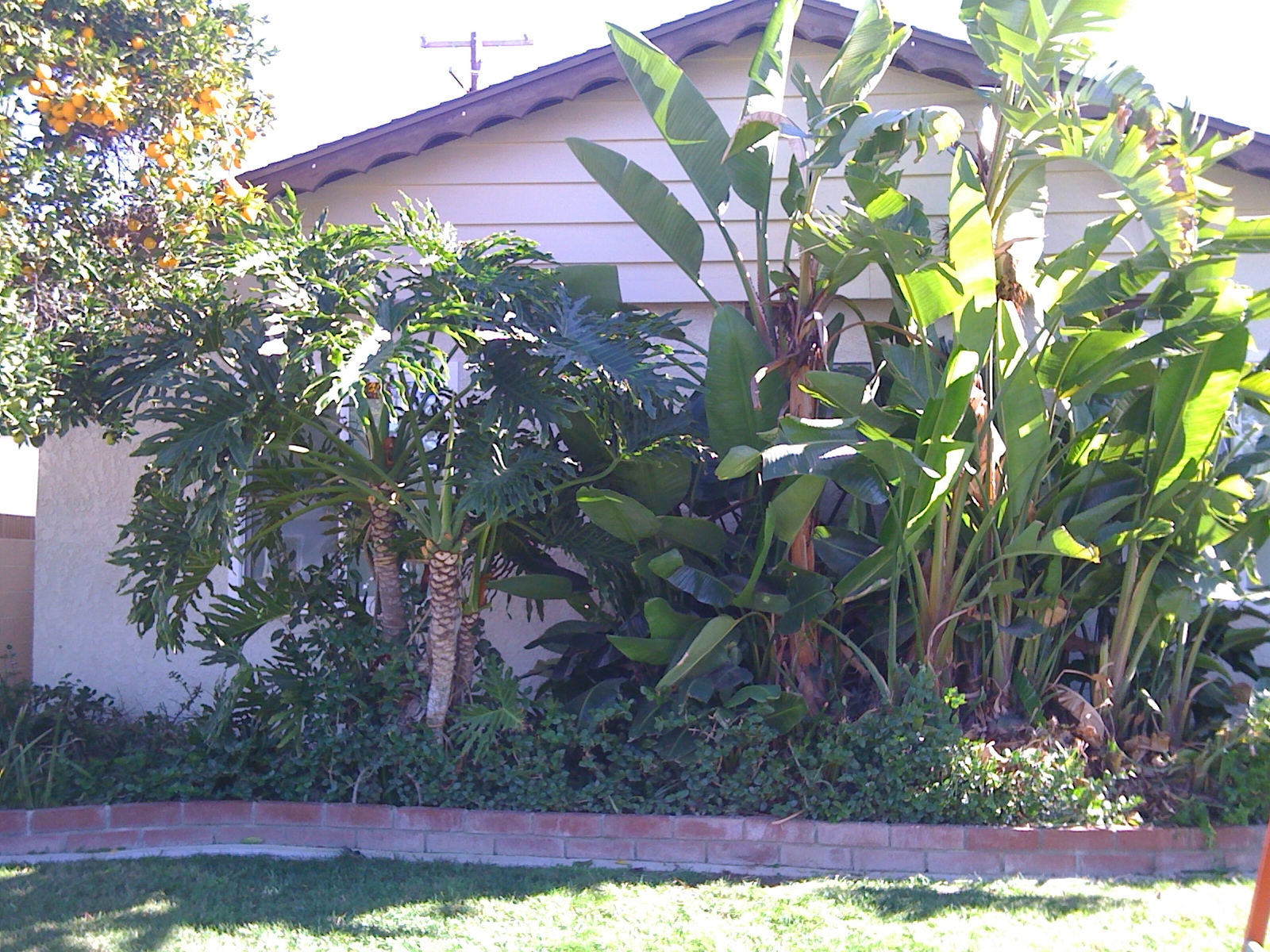 So we trimmed a LOT of this huge bird of paradise. Unfortunately, as you’ll see below, it hadn’t been taken care of and is extremely messy and overgrown with roots–about 1.5′ tall roots! It’s a big mess and we don’t know what to do. So sad because the plant is gorgeous.