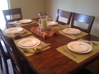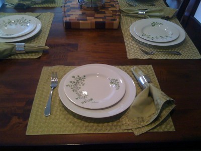 | My pretty table setting for dinner with my parents, brother, and grandma. |