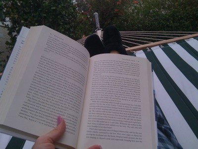 I gifted J a hammock for Christmas, and as this as been the weirdest year of weather EVER in California, he hasn’t used it much. He finally set it up only a few weeks ago, and prefers not to lay in it while it’s overcast and cold, but I don’t mind. And apparently, neither does Koal, who just climbed right up and made himself comfortable. He was smart about it, so I can’t much complain. 🙂 He didn’t knock me out or anything.