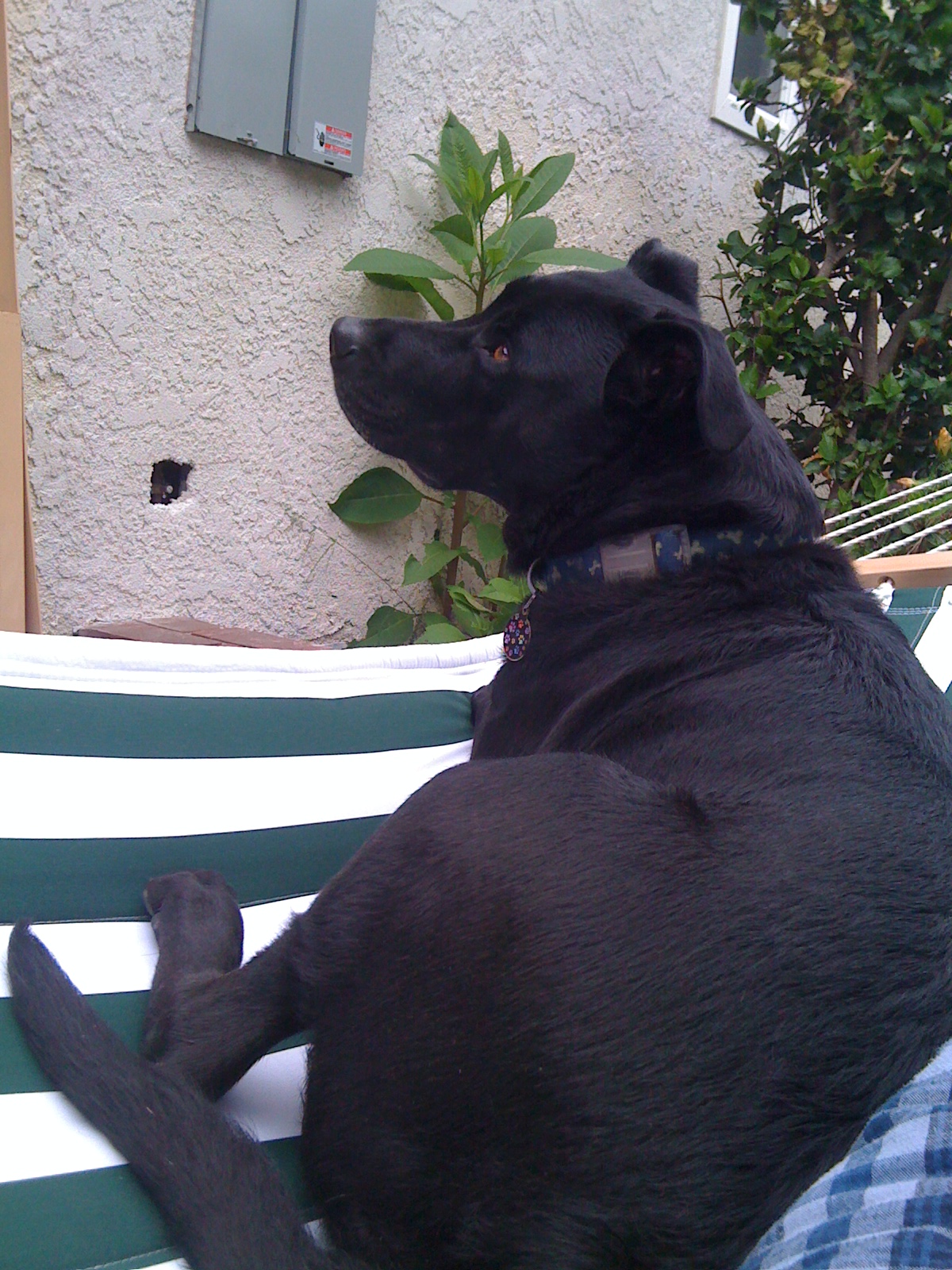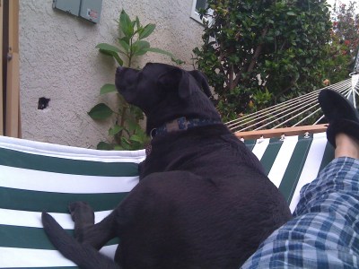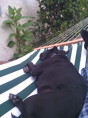 | What? Hammocks weren’t made for dogs? No! And please excuse the stucco patching – work in progress. |