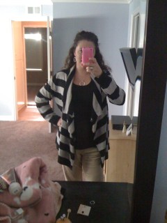Sweater: DKNY, top: ModBod, pants: Target, cute jewelry and sweater were gifts from my parents for my birthday!
