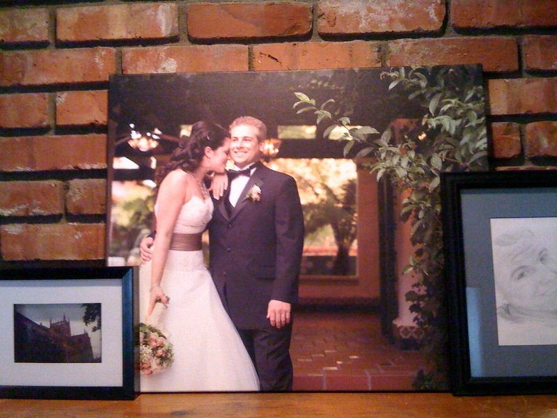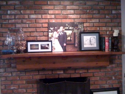 We haven’t hung it yet (still need to have a new mantle made and installed by J) but I set it up on my existing mantle in the “art gallery” of leaning and interchangeable art work for now. π