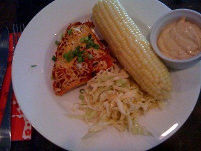 Also a Mexican cabbage salad (which I made up), corn on the cob and a chipotle sauce for the corn, also from Cooking Light.