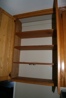 All in all, there are really not any elements I will miss, so I’m not saying I’m sad to see it go. It’s just that there are a lot of things changing around here these days and it’s getting overwhelming!! Especially when I come home and, as usual, J is pounding away and things are different. That’s a little hard to take. But I promise you I won’t miss that HORRIBLE, UGLY linoleum at all! It was its time to go. Also, I want to tell you all that your kitchen holds like 75% of the “stuff” in your house and really isn’t fun to pack up! My mom was making fun of me for complaining about it (“I just hate getting a new kitchen! Waaa waa waa!”) and I don’t mean to complain, but two solid days of packing just sent me back to last September, and it doesn’t seem that long ago that I packed and unpacked this same stuff! It takes up both of our bedrooms just to store it in boxes and bags!!