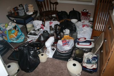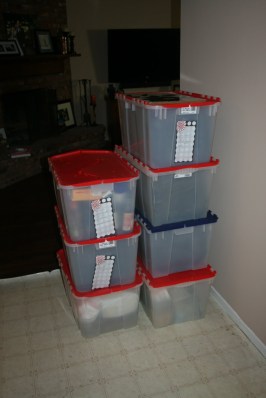 | Items stacked in baby’s room and ready to be boxed (once I buy boxes and tape–don’t worry I did that on Sunday!) |
