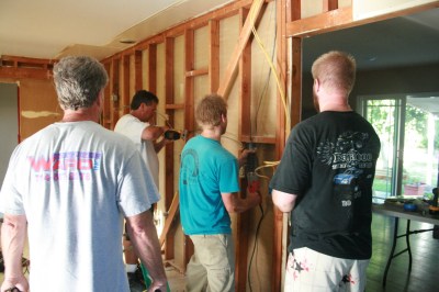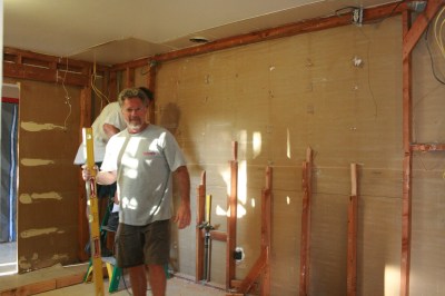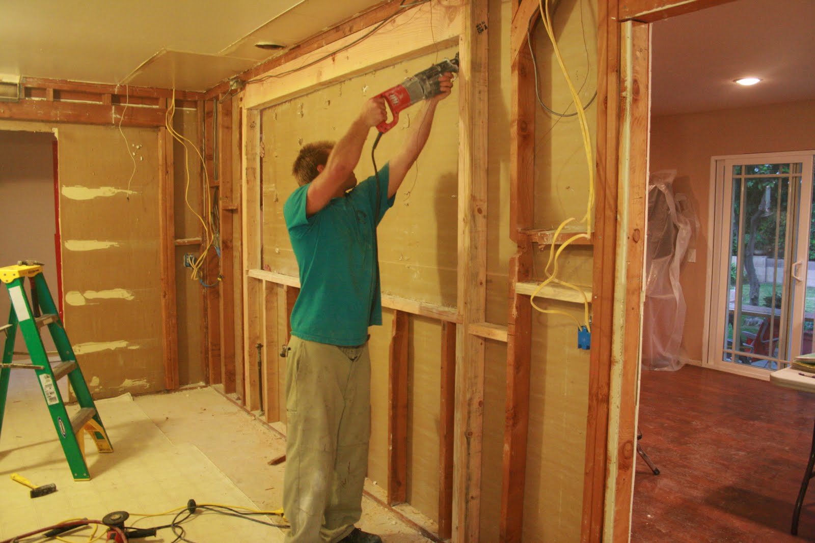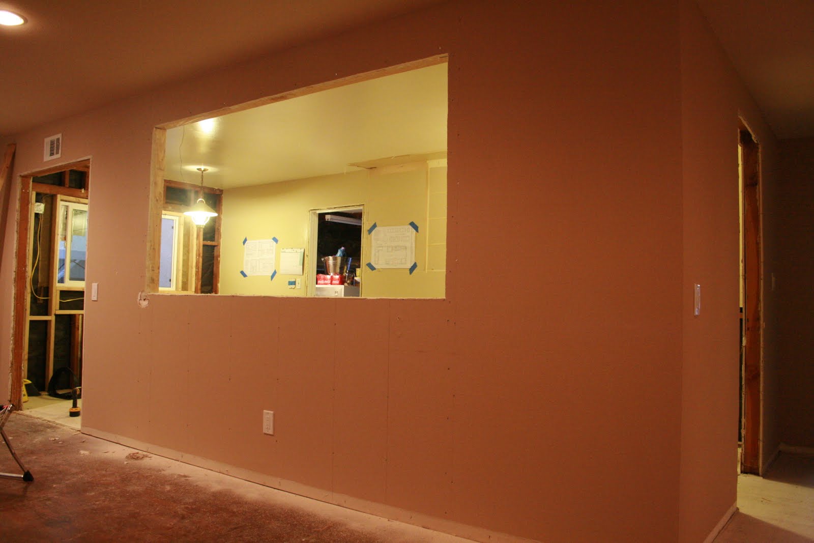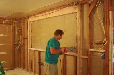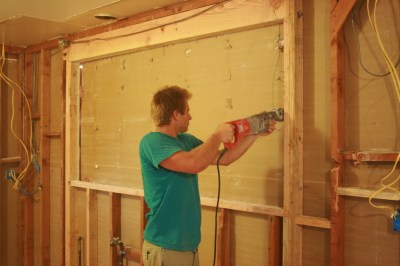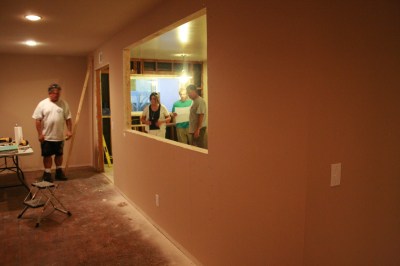 | J begins to cut away the window that will connect the kitchen and living room…at long last! I’m so excited. |
