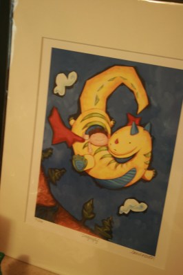 I promised a picture of the painting I bought for the nursery at the Sawdust Festival, but I should have promised a GOOD picture. Instead, we have this: