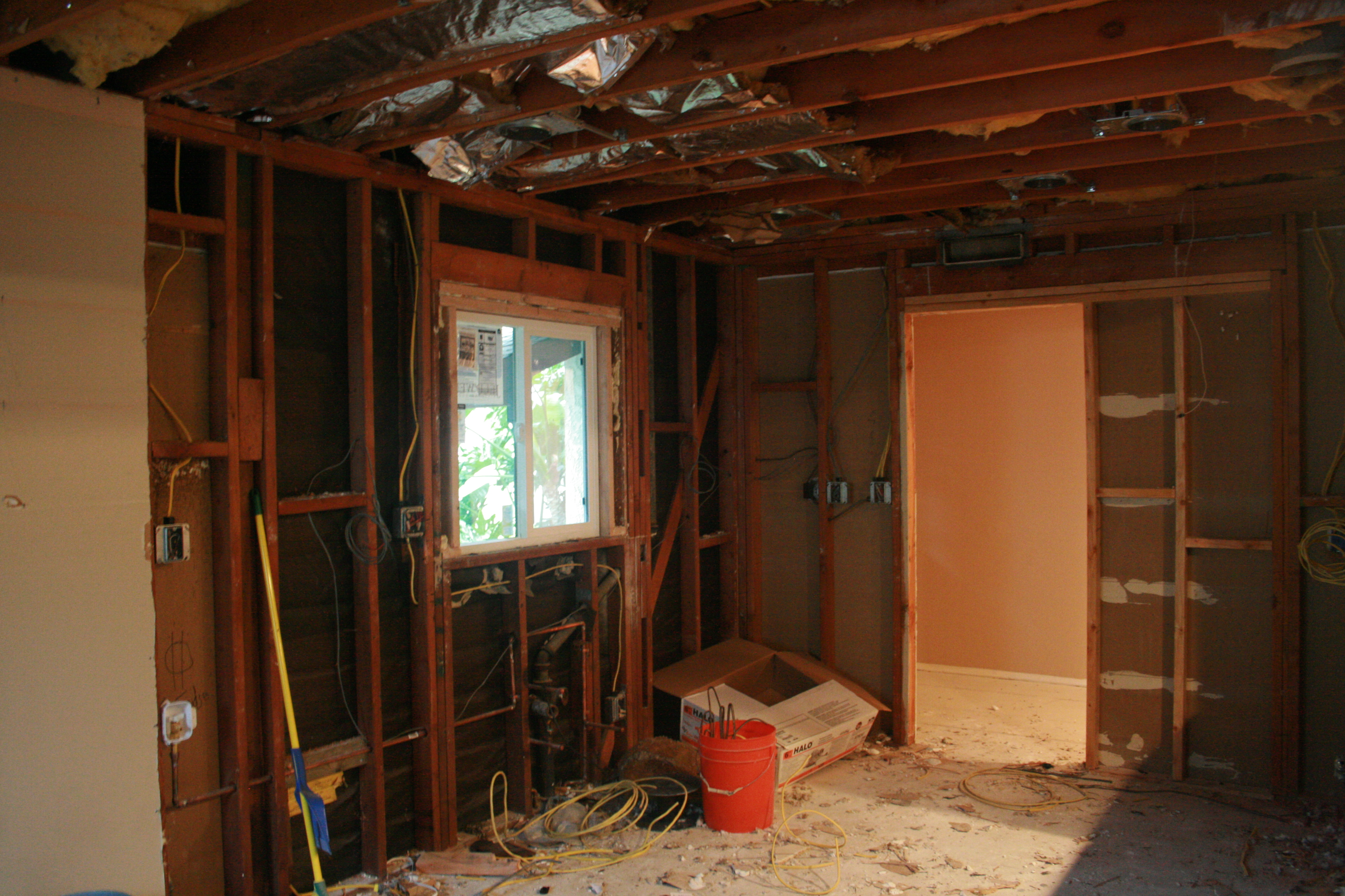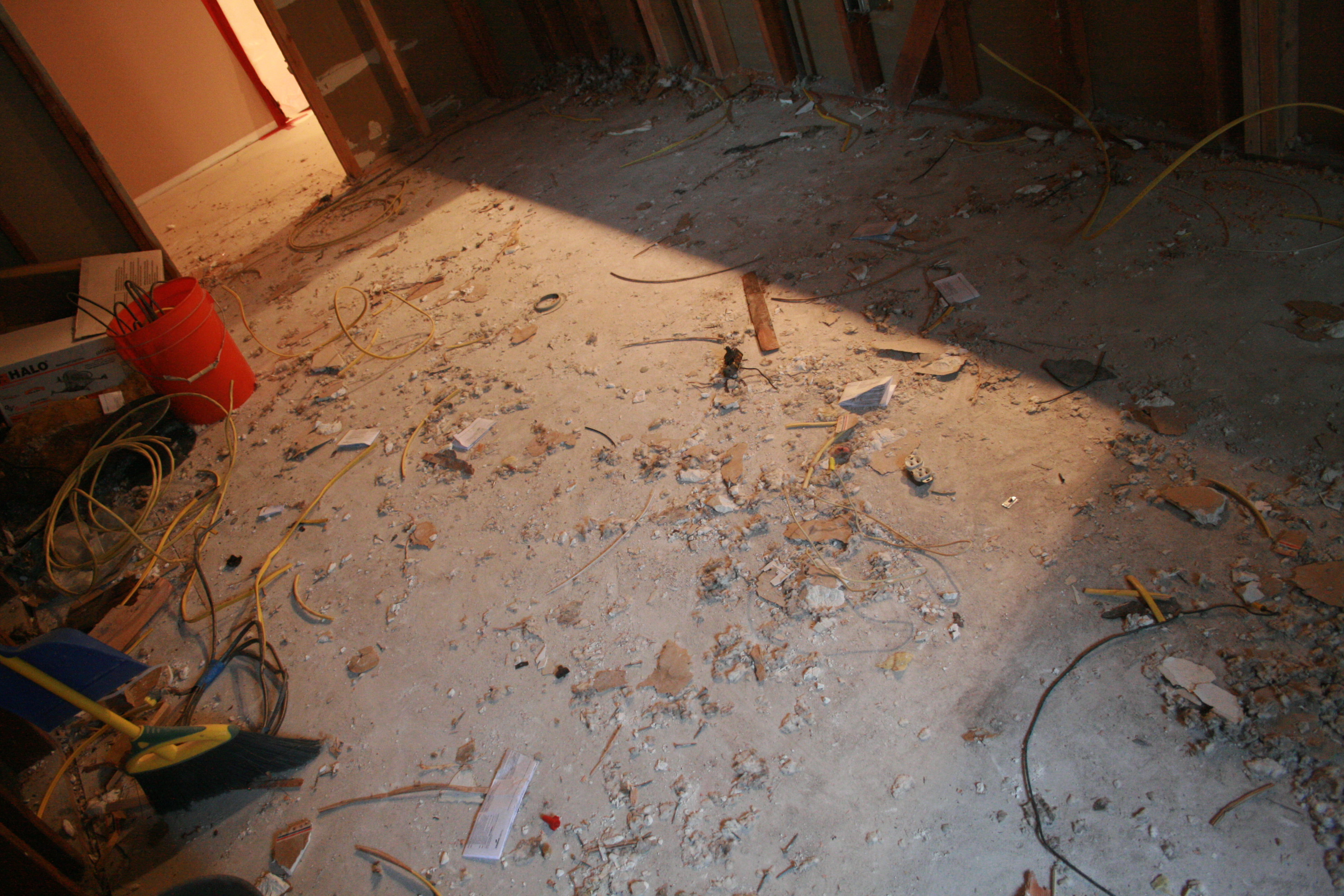 All of the walls and the ceiling are gone. Uh oh.