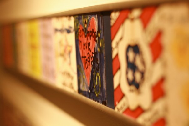 I saved my favorite for last, because this makes me cry every time I think of it. If you are familiar with the folklore of paper cranes, it is said that if you make 1,000 of them, you'll be granted any wish you seek. It's almost known as a metaphor for wishing for the impossible, knowing how long it would take to fold so many of them. Schoolchildren in Japan folder 1,000 paper cranes and sent them with their condolences. Their wish? World peace. Too see that many cranes (they were hung down the stairwell as you walk downstairs) was staggering. This is truly a labor of love.