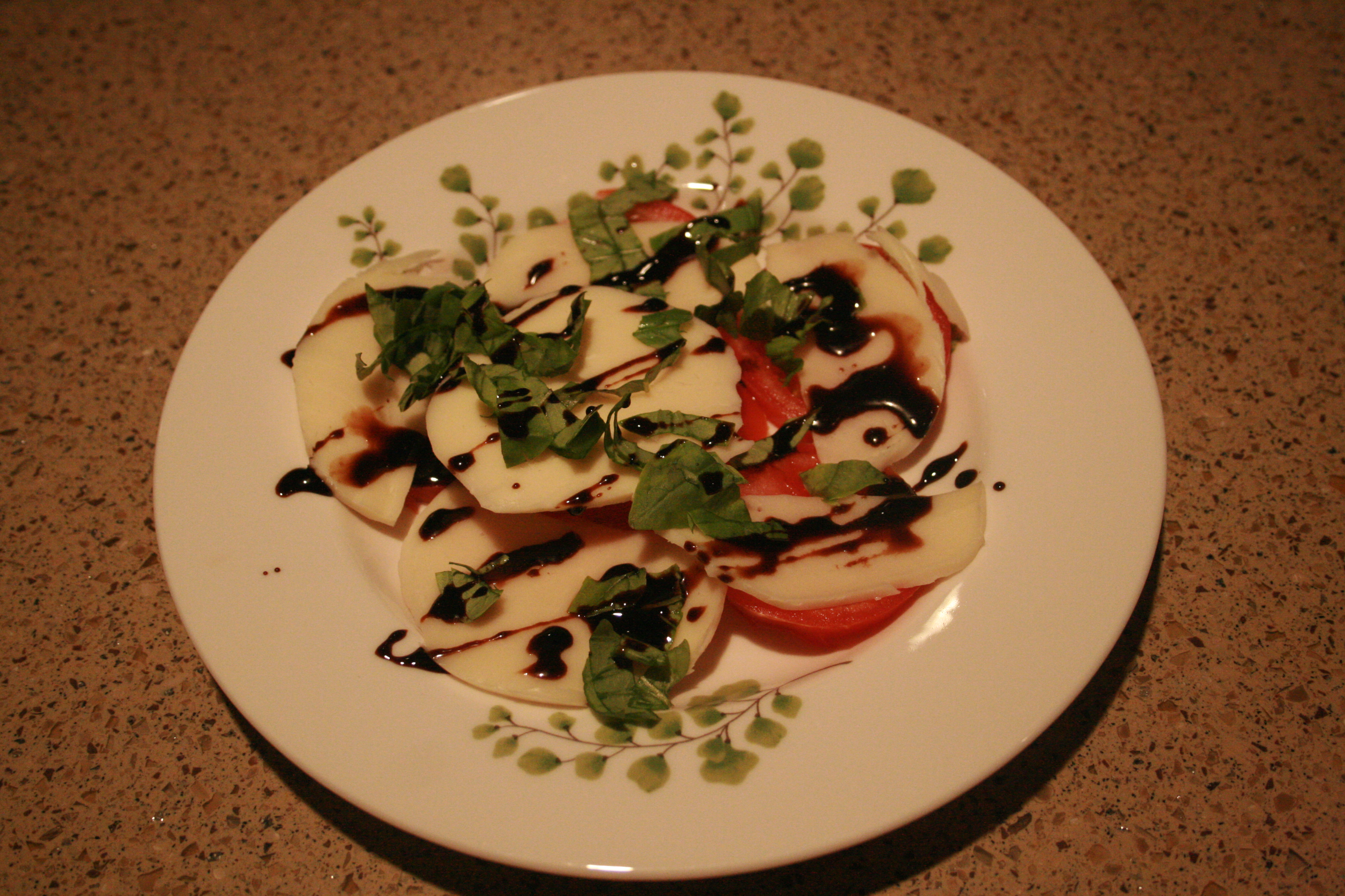 This is a pretty standard caprese salad, but I made a balsamic reduction sauce.