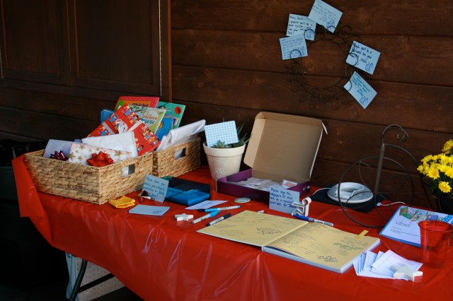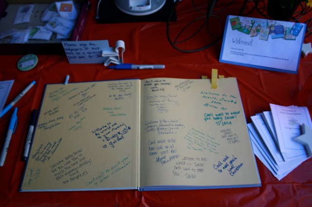 First with the guestbook: rather than a regular sign-in book, hostess Nora chose a favorite family children’s book of poems for guests to sign. I hope one day Jake can read all of the cute inscriptions and smile.
