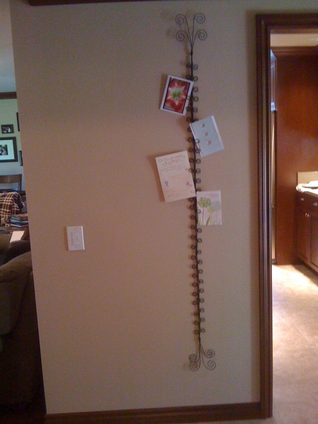 We borrowed the idea of hanging this awesome card holder in our entryway for photos, wedding invitations, and the like. I can’t wait to fill it with Christmas cards!