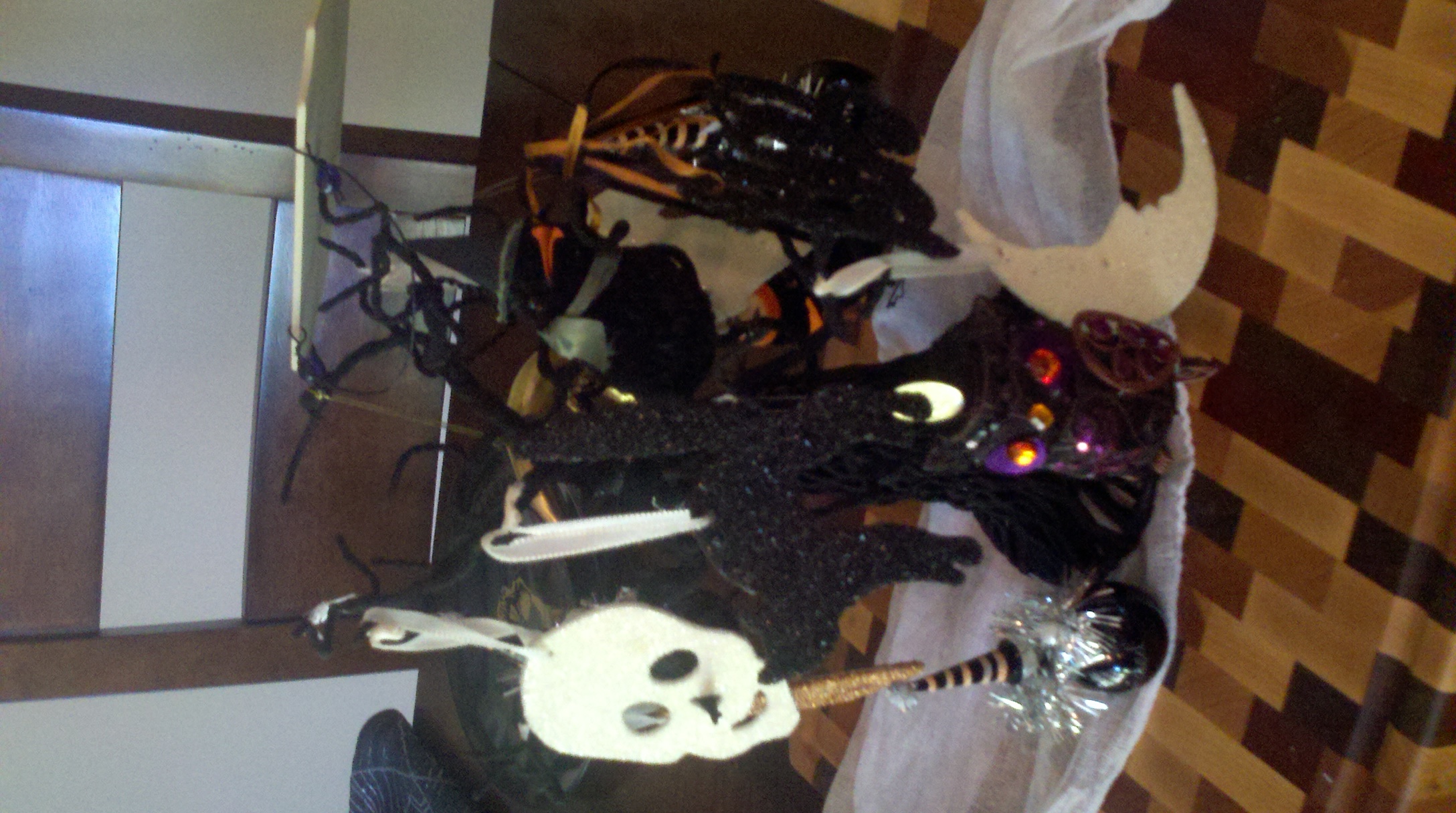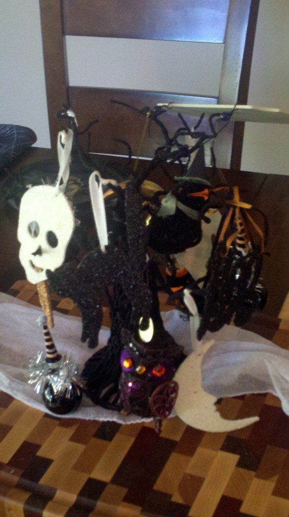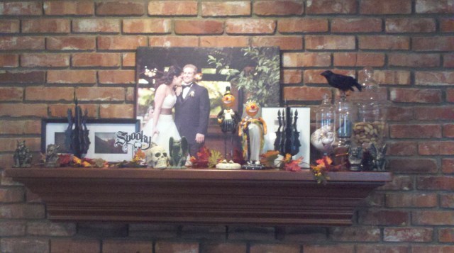 Halloween is my favorite holiday, and I thought I’d share some of my decorations.I’m still looking for a stocking holder so I can hang my feather wreath.