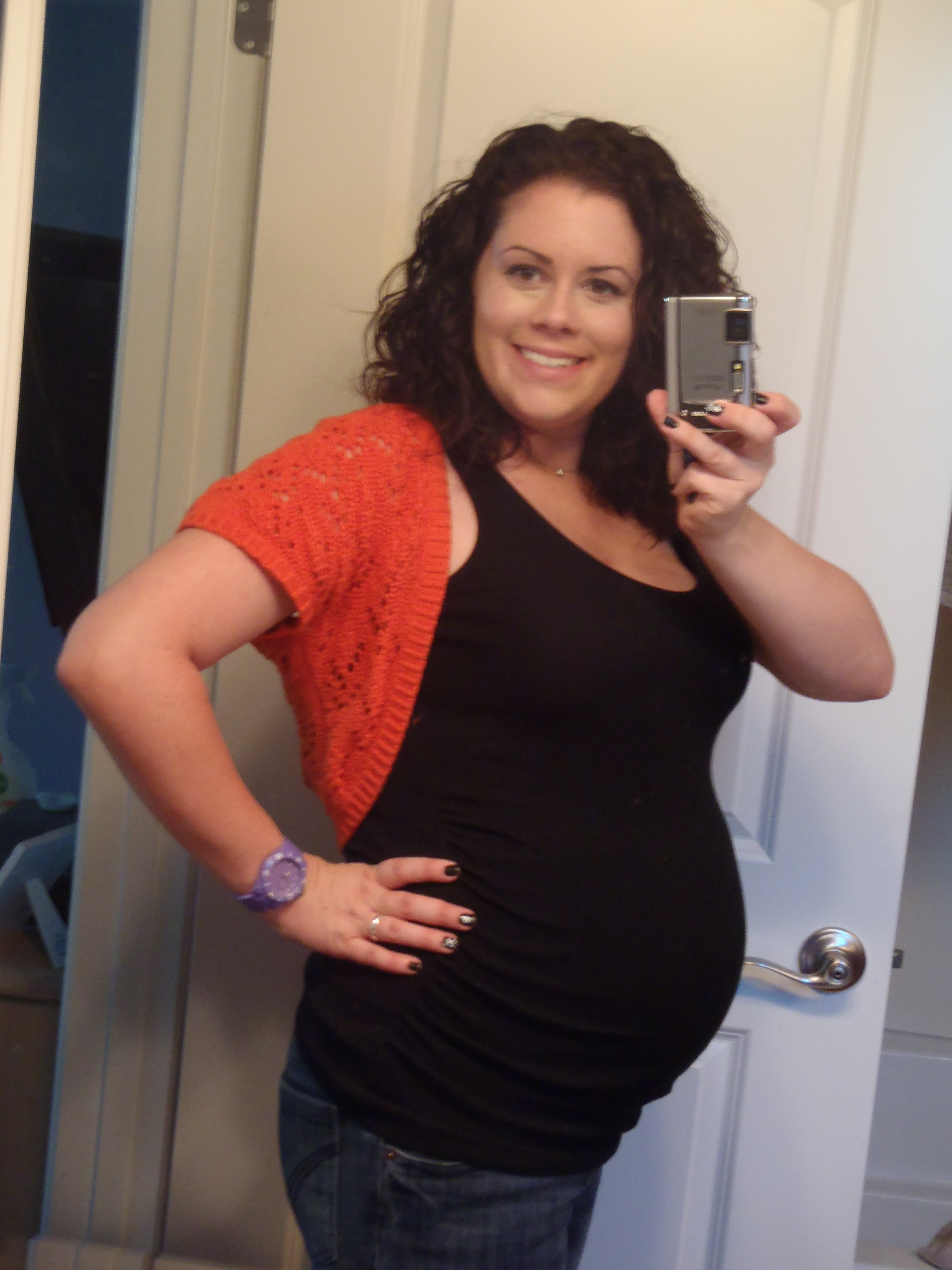 The update for me this week is that fatigue may have set in again…I didn’t have much fatigue in the beginning (I was tired, but not fatigued) so I’d have to say YES I am having it now. Sometimes it just hits me in the middle of the day and I don’t feel like I can continue with whatever I’m doing. I’m pretty uncomfortable in general as well. I feel gross! haha. It doesn’t help that my very nice husband is trying to lose weight until our weights match? I’m not sure what that is about! (It’s not as funny to me!) But thankfully, at my last appointment I hadn’t gained ANY weight, which is wonderful. I hope I can keep it up. The hunger and thirst thing has seemed to return…I’ve found myself insatiably thirsty and getting hungry more frequently. I think these are little spells that come and go. I’m still fighting to breathe and having a lot of back pain…I think those two things will stick with me.