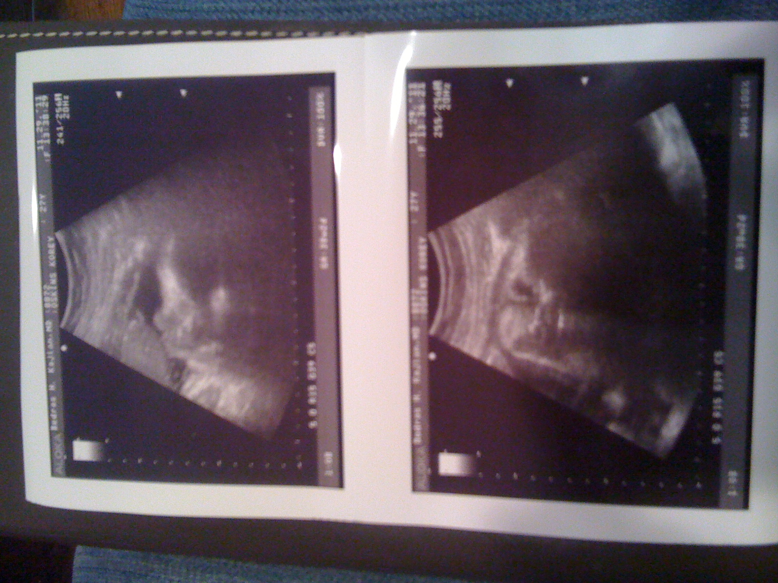 Three pictures for you today: me at 38 weeks, side and front, and two ultrasound pictures of the baby.