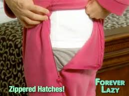 Is Forever Lazy real? It can’t be. First of all it’s so dorky..the commercial is God-awful, and their continual tagline: “…while being lazy!” would make me too embarrassed to buy it, even if I wanted to for some reason! And then, they get to the “access hatches” on front and back to go to the bathroom!?!?!?