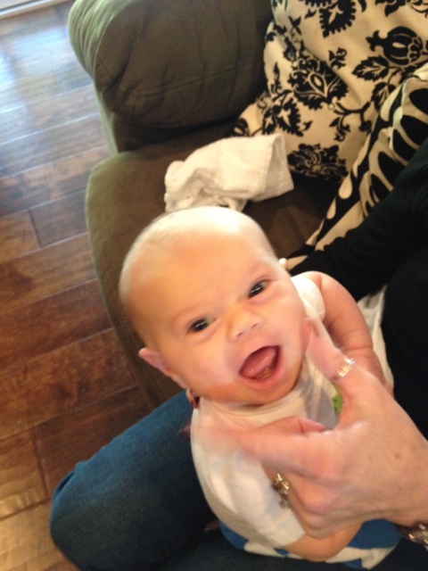 Korey, he is so darling. I love his precious smile. You don’t even look like you had a baby! Can’t wait to see you all in April.
