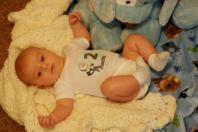 I’ll update you all again after Friday’s pediatrician appointment. I’m scared to see him get his first shots since the hospital, but excited to find out just how big he is (I think he’s huge!) He is already wearing 3 month clothes (not just 0-3 but 3 months) and has been for a while. He is such a joy, and I feel like I fall further in love with him every day. He is entertaining and charming, and for the most part such a sweet, patient boy. I find myself wondering constantly what I’ve done to deserve him. He is just perfect. 🙂