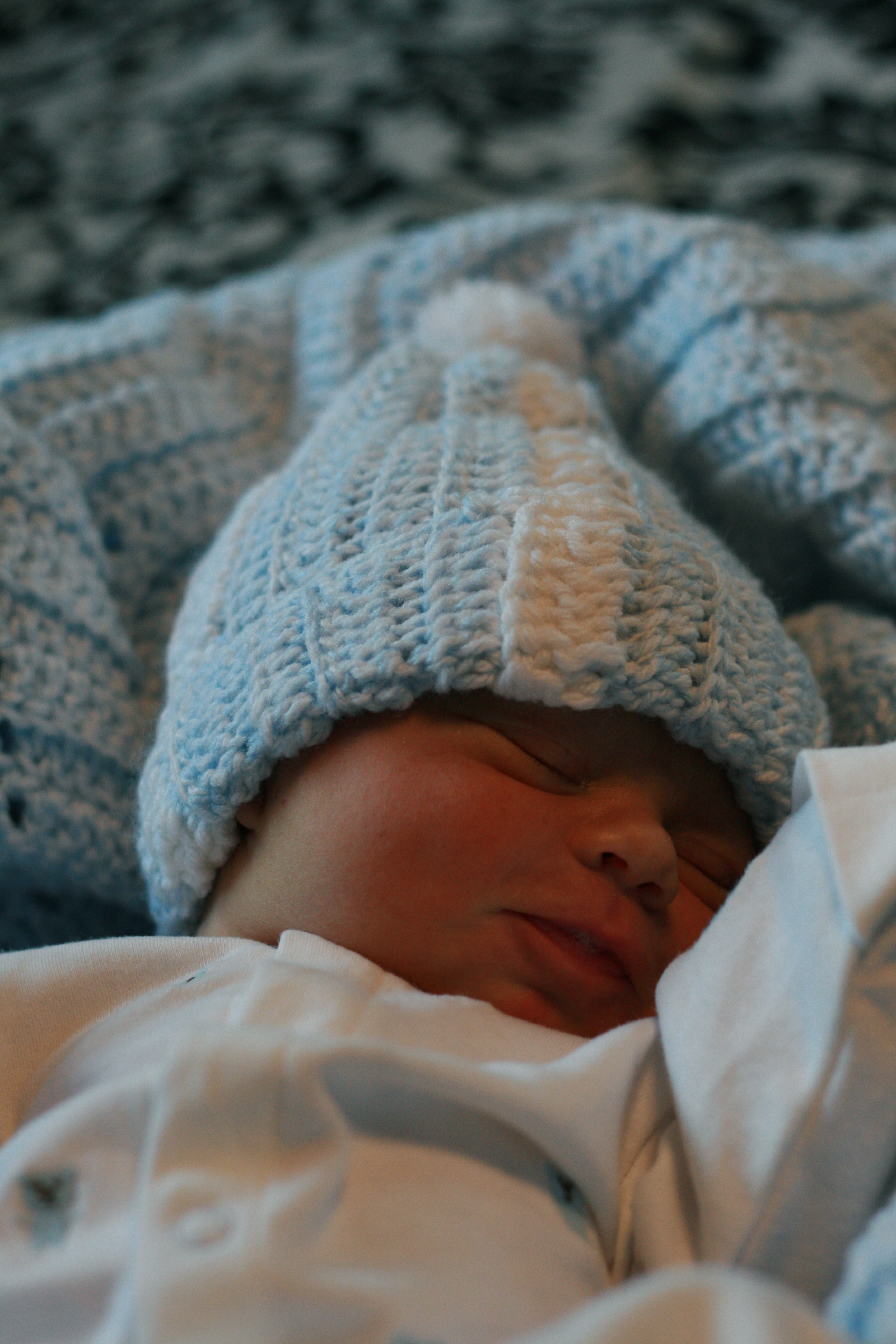Next up: my little boy at 2 months in a handmade sweater and cap from my grandmother’s friend Jan in upstate New York.