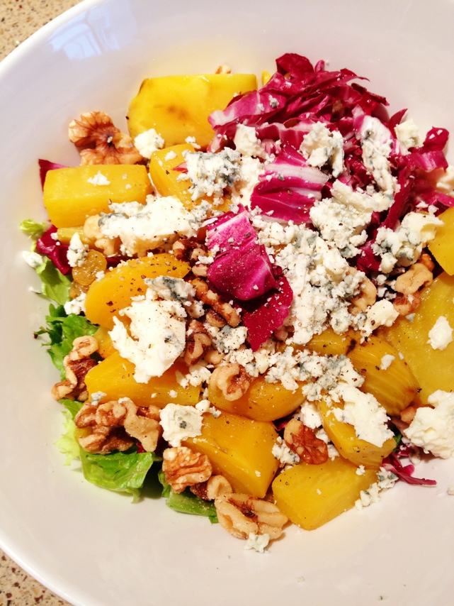 Golden beet and raisin radicchio salad with blue cheese