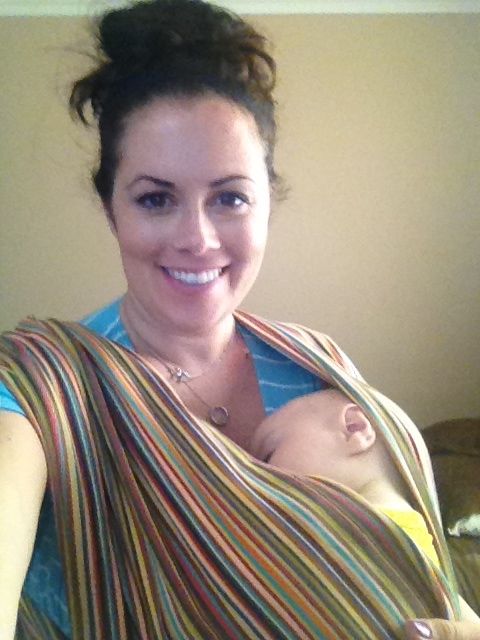 - Stretchy wrap: Great for newborns. Inexpensive, soft, snuggly, washable, easy to adjust and learn wrapping (because they are stretchy, you can tie the wrap on before putting baby in it, and stretch it into position). My Moby wrap falls into this category. Around $40 and easy to purchase at stores like Babies R Us and now Target, I consider these things a “must have” for any new mom. The early days of your baby’s life are the most crucial for closeness, bonding, and milk production, plus this wrap is cheap and easy, and your baby is light!