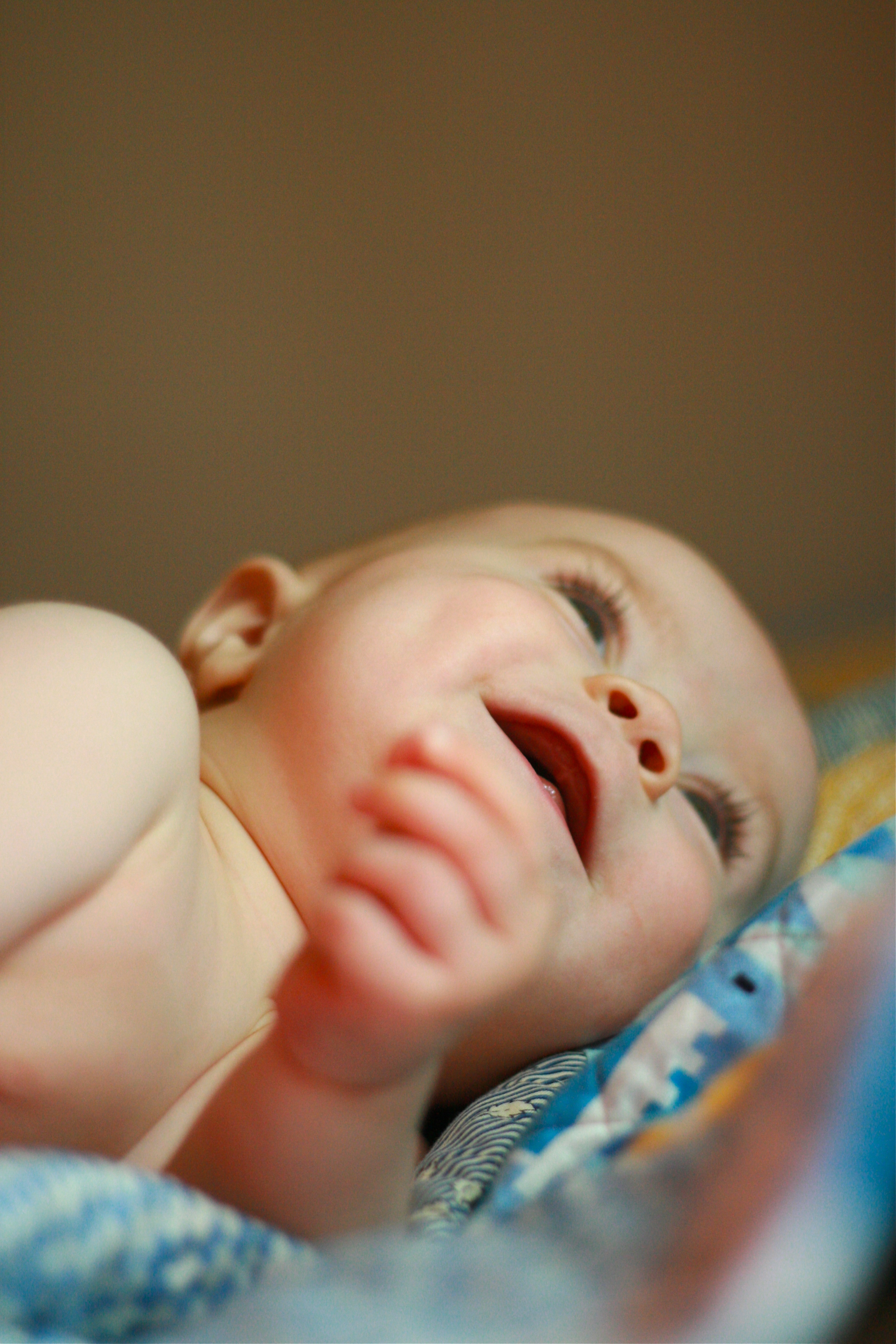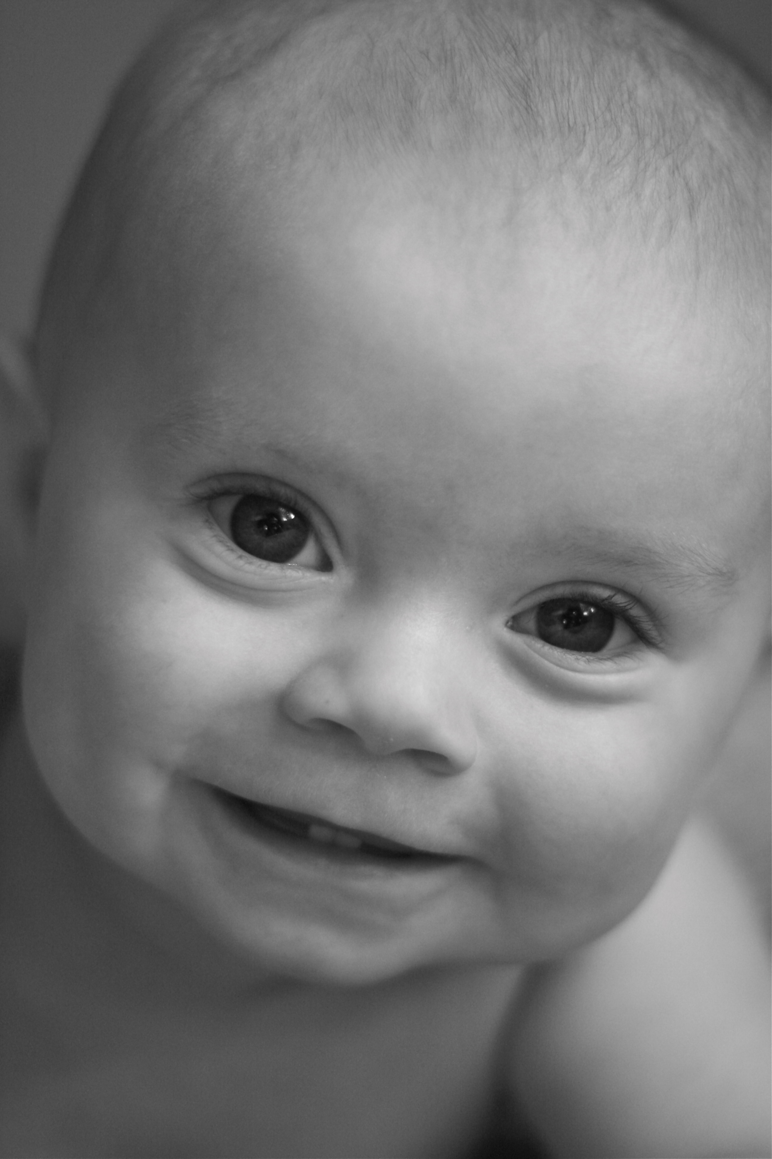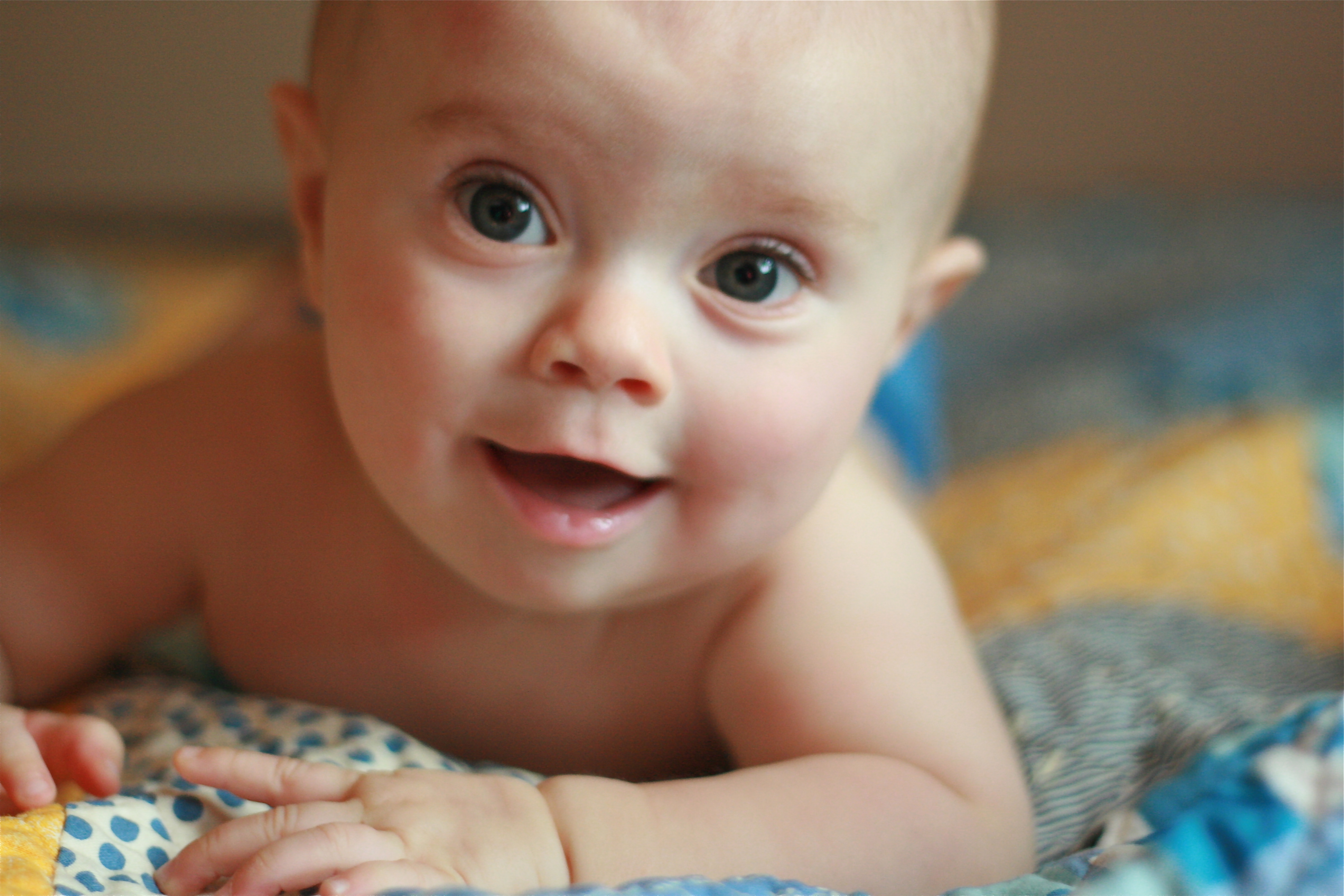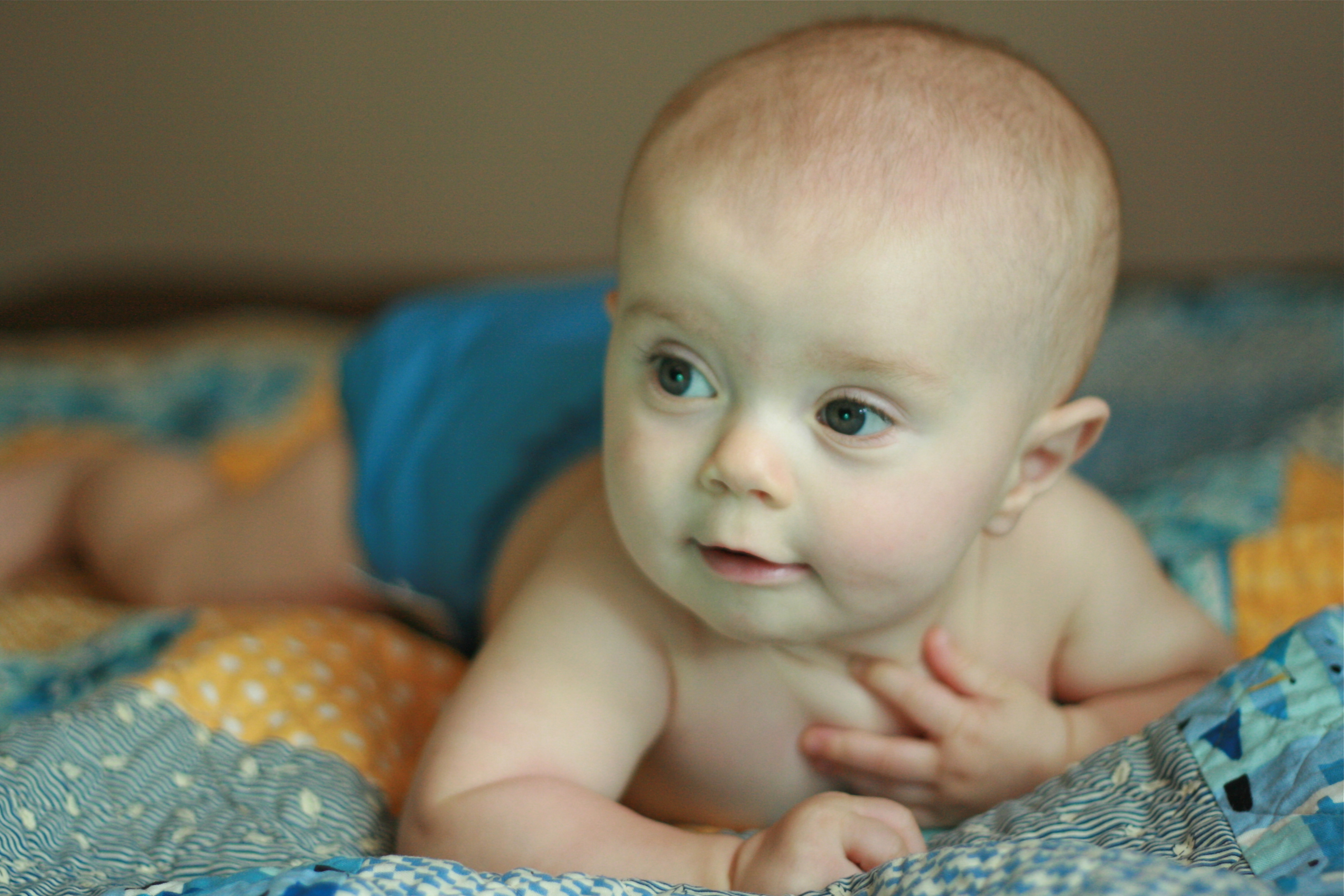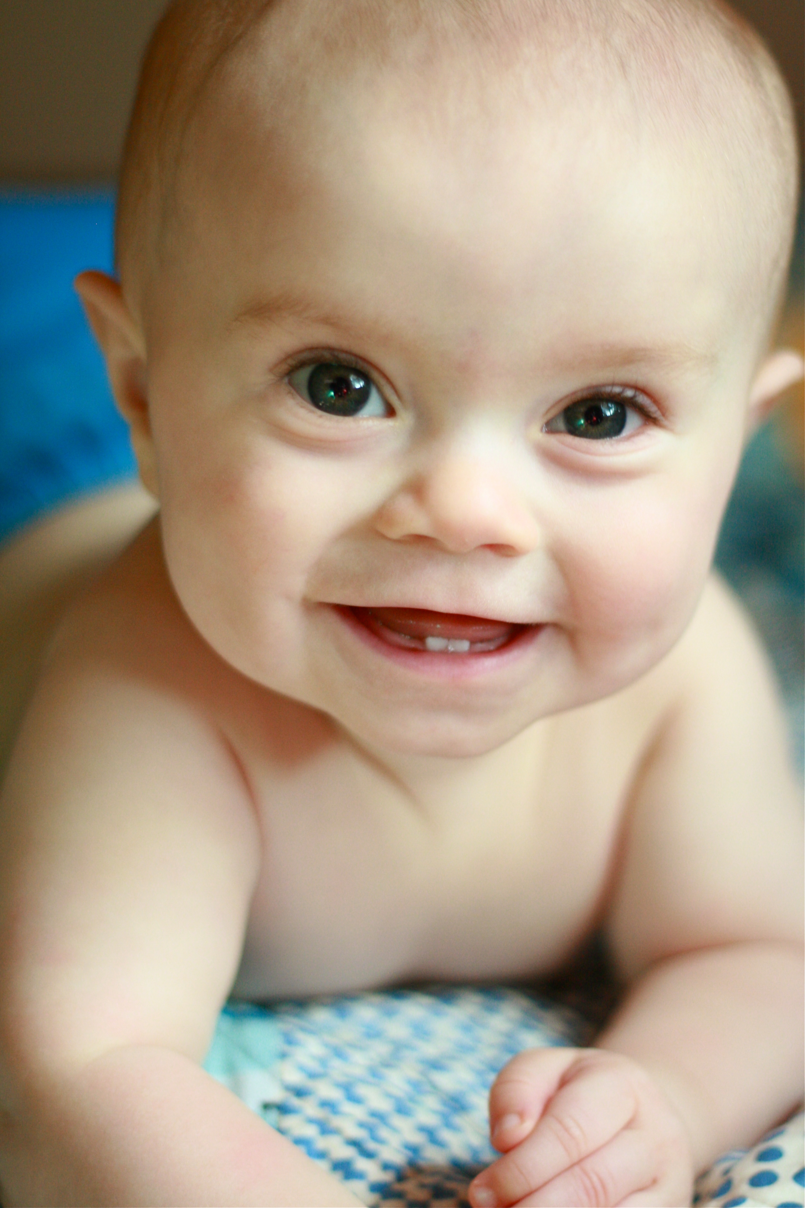 He is in constant motion. In fact, for the first time it was very difficult to photograph him. He smiles for the camera, but he won’t sit still! I sit him up and he immediately flops to his belly and crawls (very quickly!) away. He was giggling and crawling non-stop while I tried to take these. It felt like wildlife photography. I couldn’t even bribe him to be still with a toy, he just wants to MOVE.