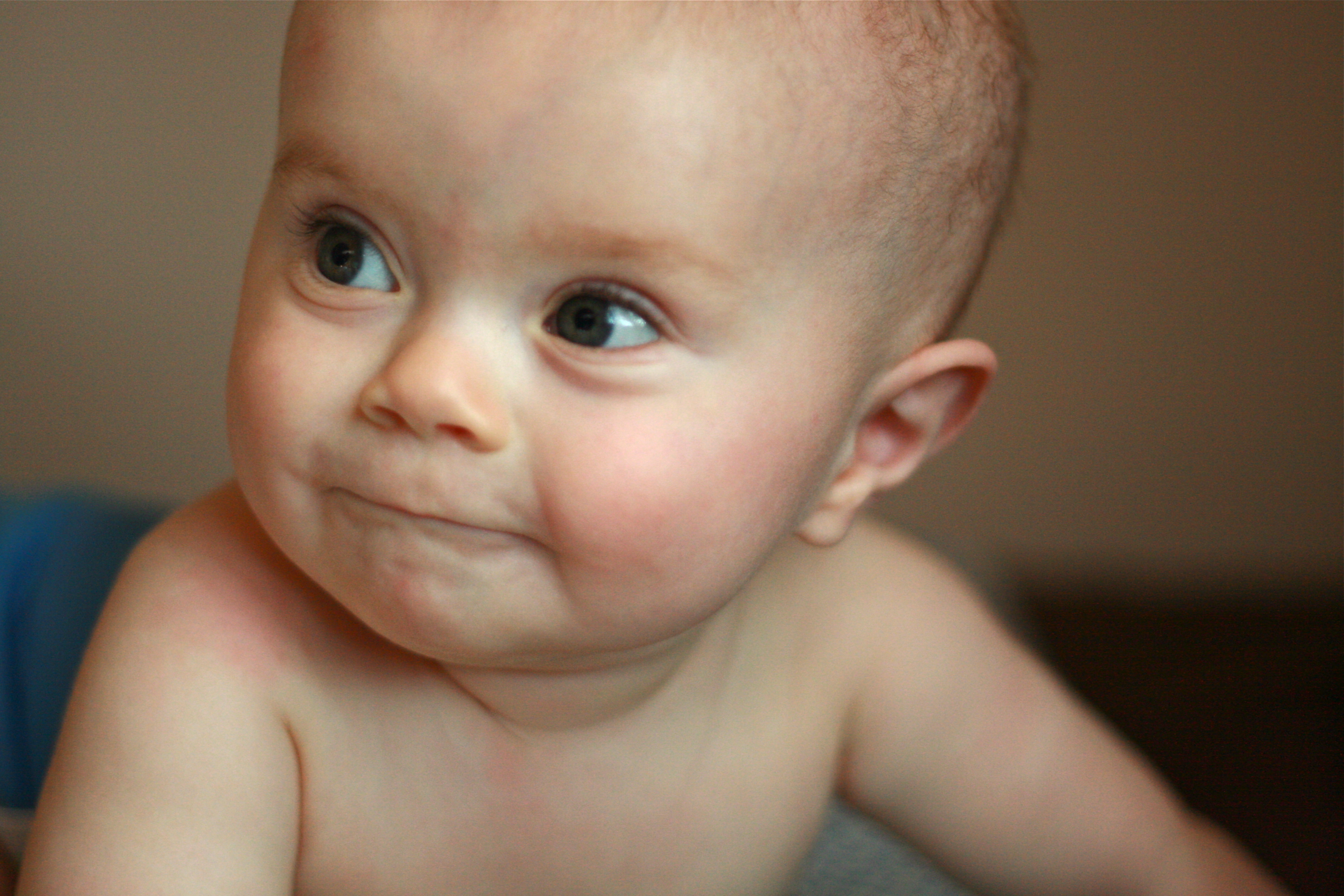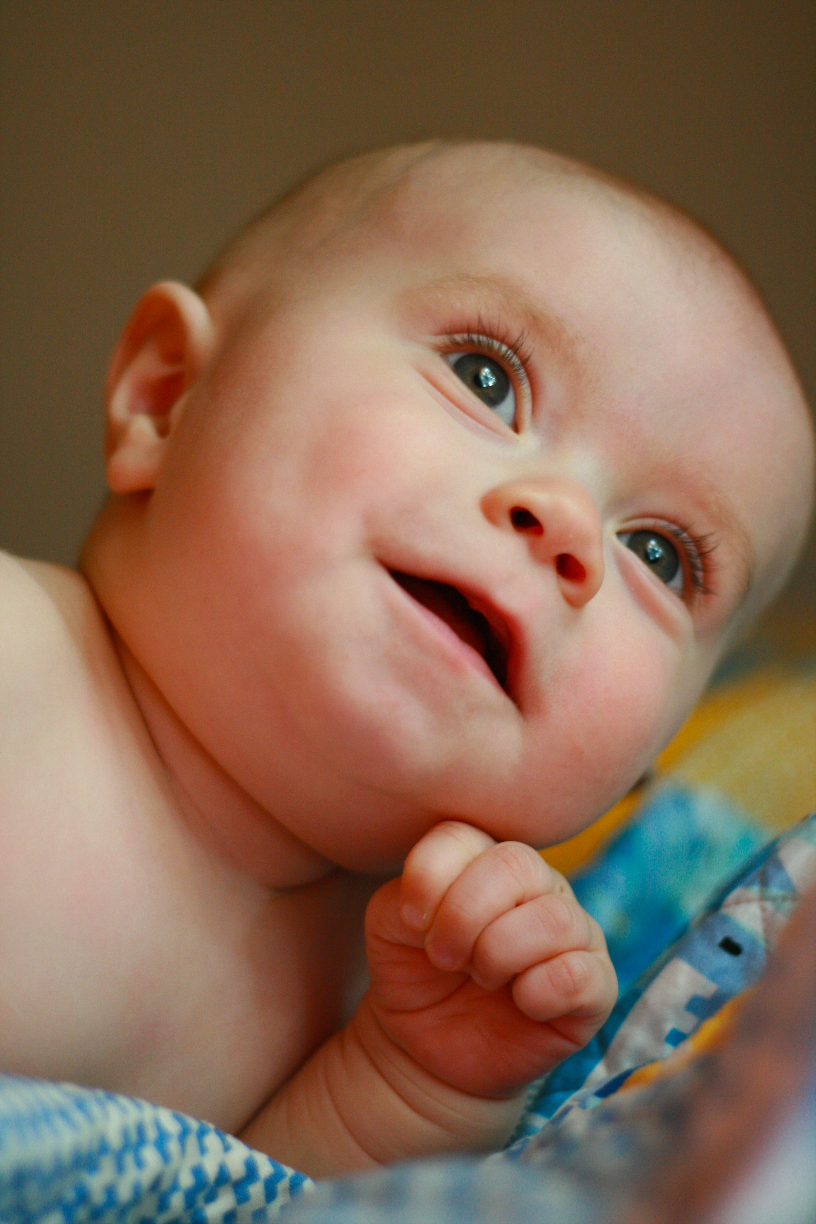 The sounds are increasing in volume and veracity these days! He often says something that sounds just like “mama” and imitates me when I say it, but I don’t count this as a word because he’s not using it as such…he also says “dada dada” but I’m applying the same rule… He yells SO LOUD and it’s hilarious and awesome. He looks really proud of himself when he does it. My favorite of all is his soft, whispery voice when he is “talking” or babbling to me in the morning. It is the sweetest sound I’ve ever heard.