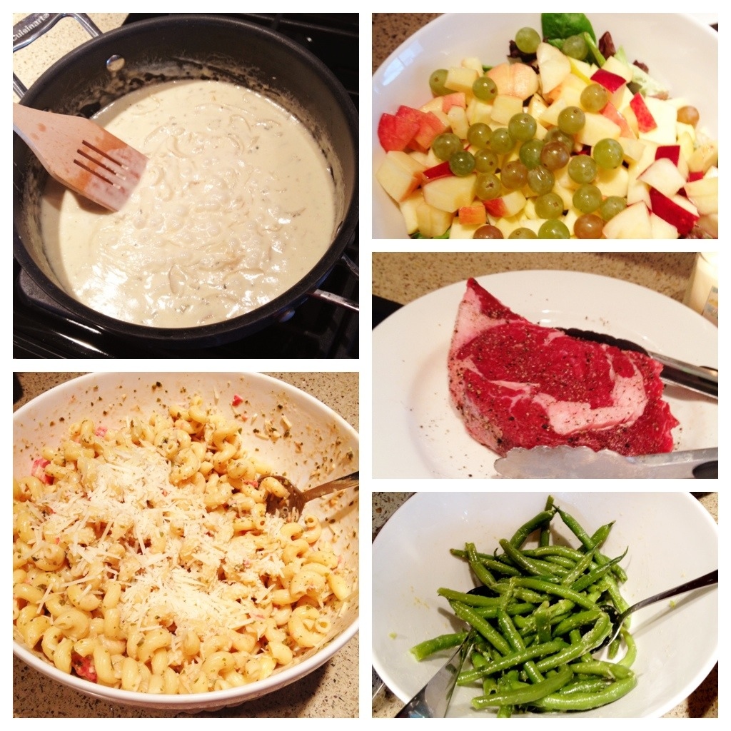 This post will give you a meal idea and shopping list. This is a more “special occasion” meal–not because it’s difficult but because of the calorie count. I definitely don’t cook like this every day!