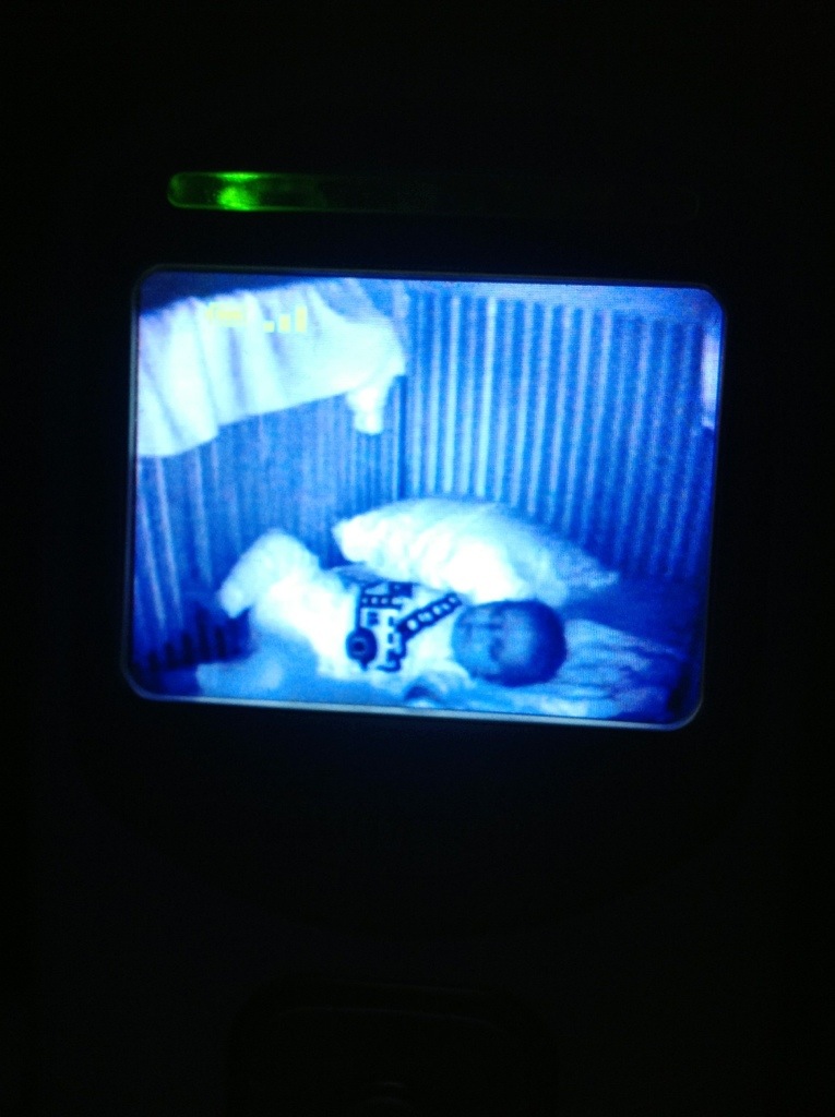 I am so thankful for my video monitor to see the funny things my boy does in his sleep. Look how he’s sleeping now: