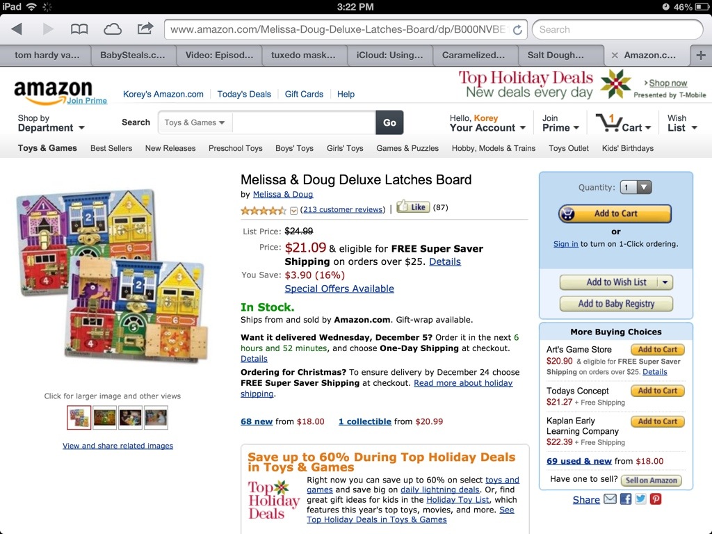 A few people have started to ask me what Jacob “wants” for his birthday and Christmas (easy: world peace.) I thought I would post about it, and my thoughts on gifts at this age. Jacob loves everything. I don’t think he needs anything fancy. My plan is not to get him anything for his birthday because I think he will be spoiled enough at his party. Santa will be bringing him a few things on christmas morning, of course! although my main plan is to let him go crazy on wrapping paper and tissue while josh and I open our gifts to one another. I have suggested to people to gift him a recycled (clean) box full of tissue paper or bows that he can play with for five minutes. He would be thrilled.