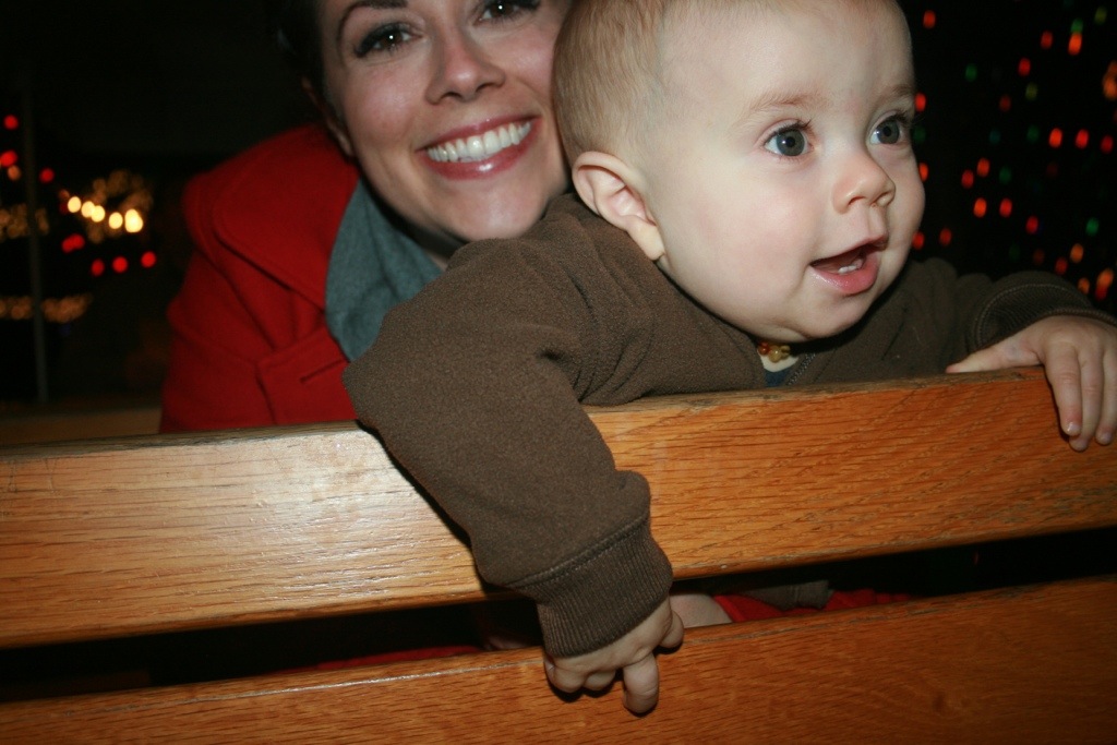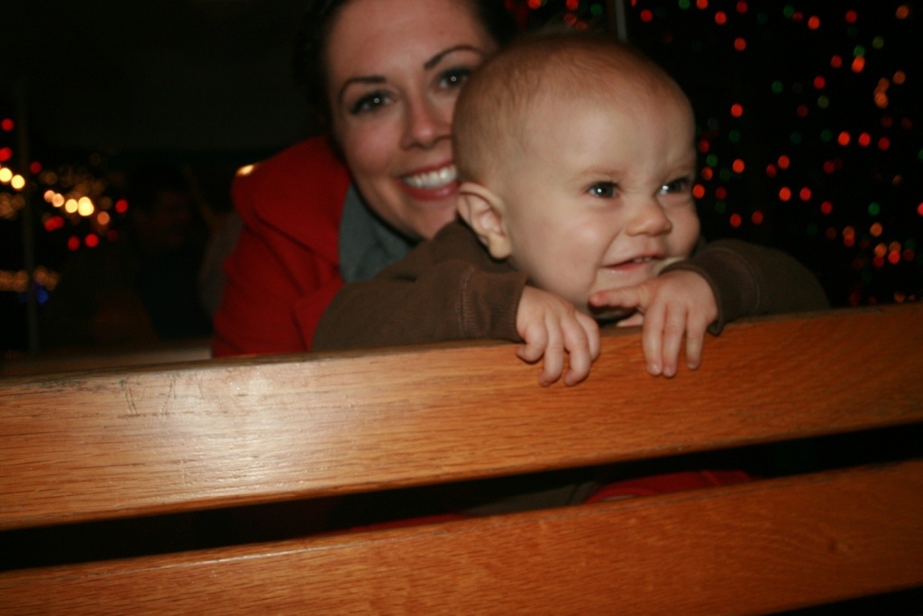 We took Jacob to Irvine Park for the Christmas train. It is beautiful there; lights all over the trees and train. The little train takes you to an open-air auditorium stage where Santa is waiting. Jacob was enthralled.