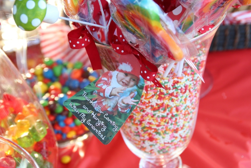 Around June of this year (2012), I was talking to my friend Niki and someone the topic of garden gnomes came up, and she said, “that’s what you should do for Jacob’s party!” I loved the idea. It is not commercial, not common, and not gendered. I thought it fit perfectly with my little December birthday without making a “Christmas” or “winter” theme (although Winter ONE-derland is a very cute idea, too!). I also thought it would be adorable with the park setting. Of course I had dressed Jacob as a gnome for Halloween and one of his pictures was framed welcoming guests to his party!