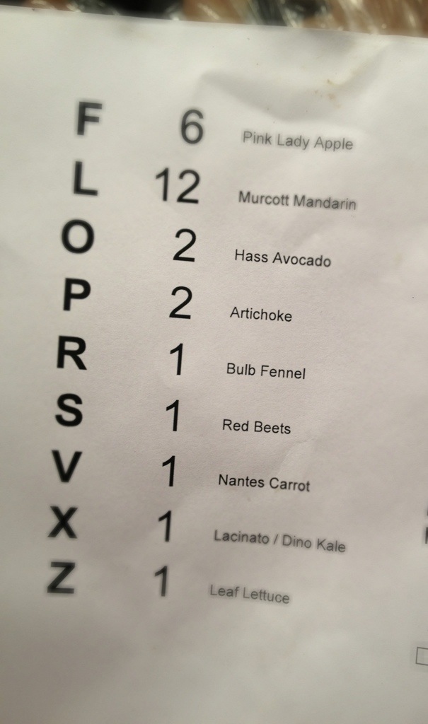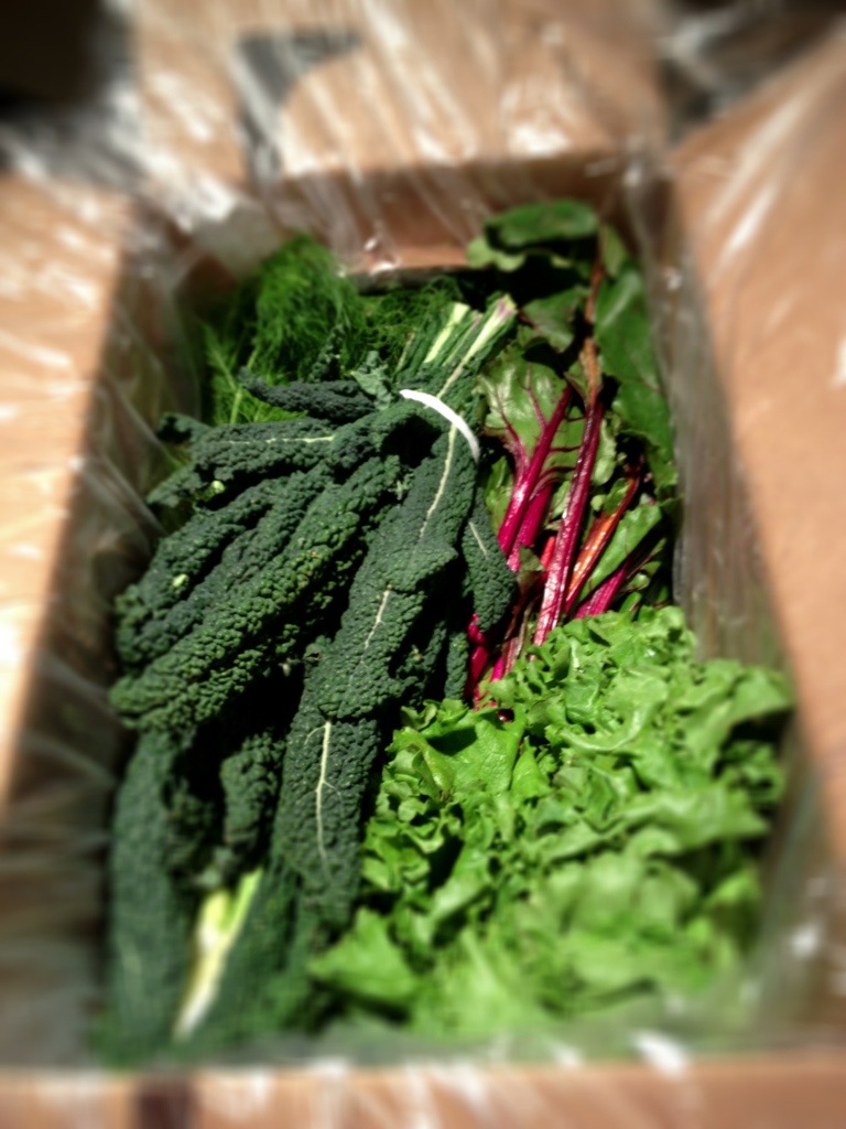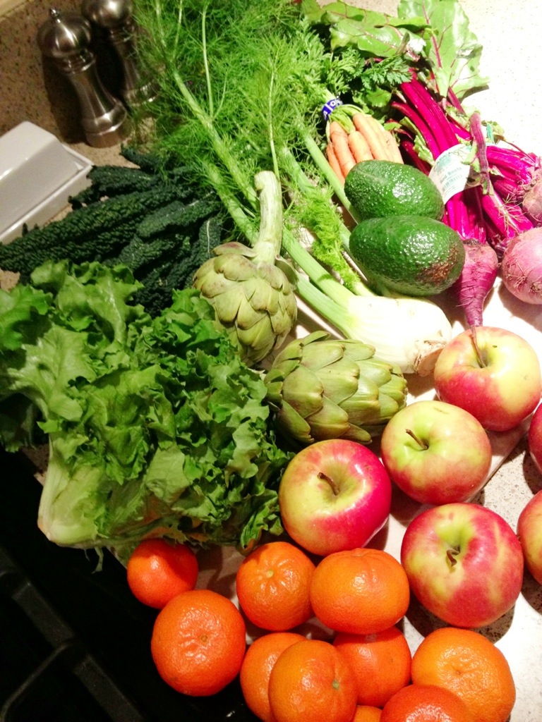We got our first CSA produce box. CSA stands for Community Supported Agriculture. It’s a way of ensuring that your produce comes from local farms, farmers, and communities by having it collected and delivered. I got a groupon and had always wanted to try it out. The box was packed with beautiful fruits and vegetables. The contents list is below. We have already had some of the dinosaur kale in our smoothies, eaten apples and mandarins, made a salad with the beautiful lettuce, and eaten the artichokes (they were delicious!). I wanted to challenge myself to cook and eat more different things, and so far I’m very happy with it. There is nothing in the box I cannot use, and I love knowing it is fresh, in season, and supporting local American farmers. We get so out of touch with seasonal produce since we can get anything, any time of year from South America or some other distant place, and farmers here are struggling. Plus, I like knowing that it is nutritionally dense (versus produce that is who knows how old) and free of chemicals. It’s very dirty, of course, because it just came from the ground!