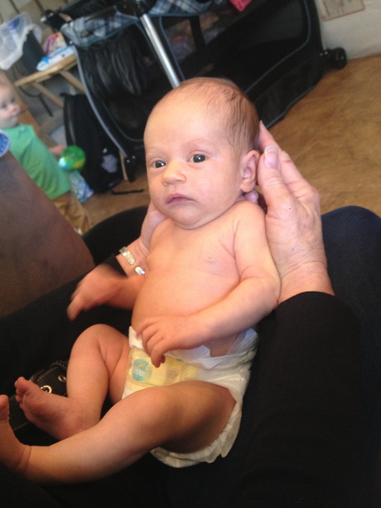 But Jacob is really very sweet with Alexis. I think he just loves her already. He touches her very gently and sweetly. It’s adorable. Last night he gave her several sweet kisses on her arm! Heart melting!