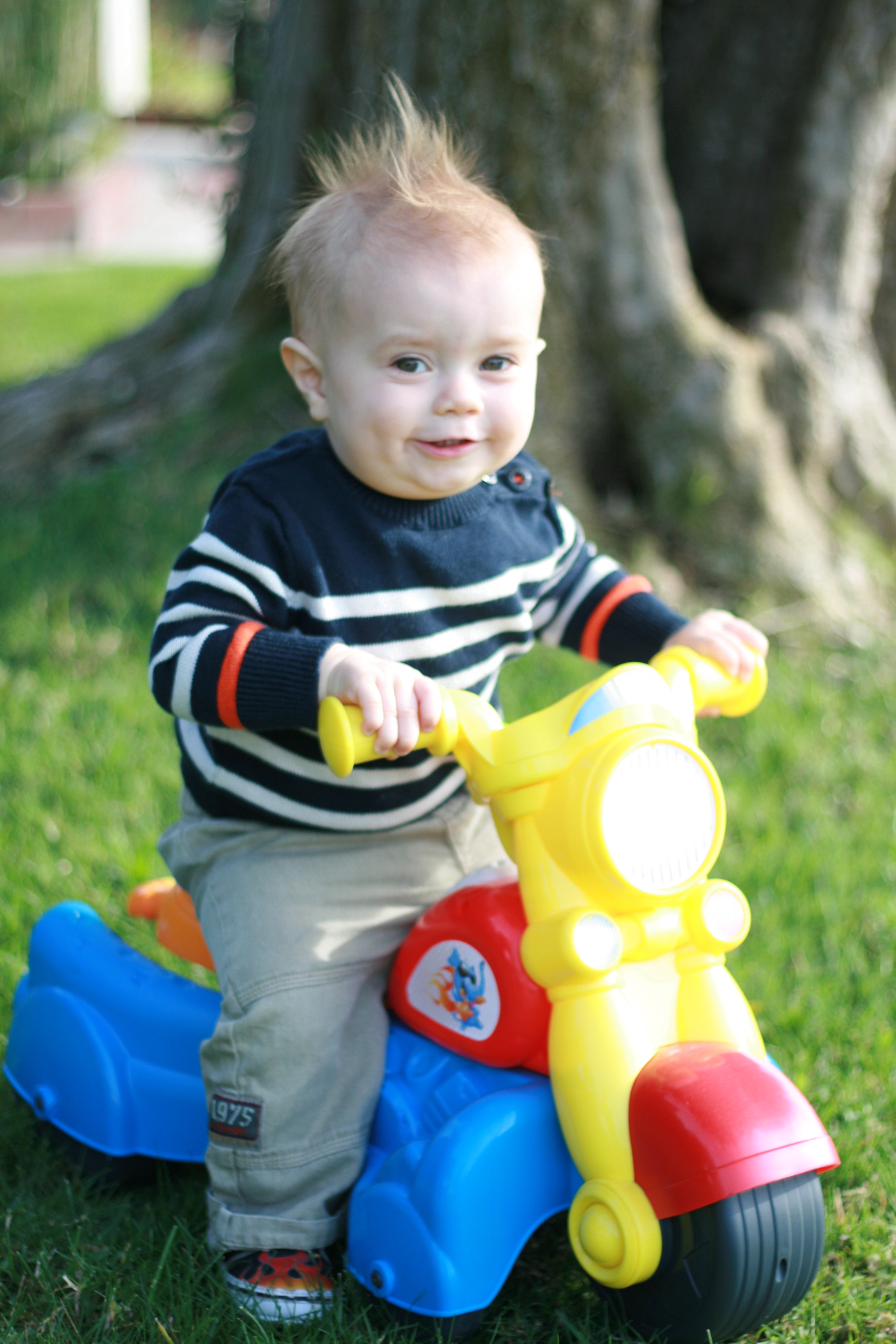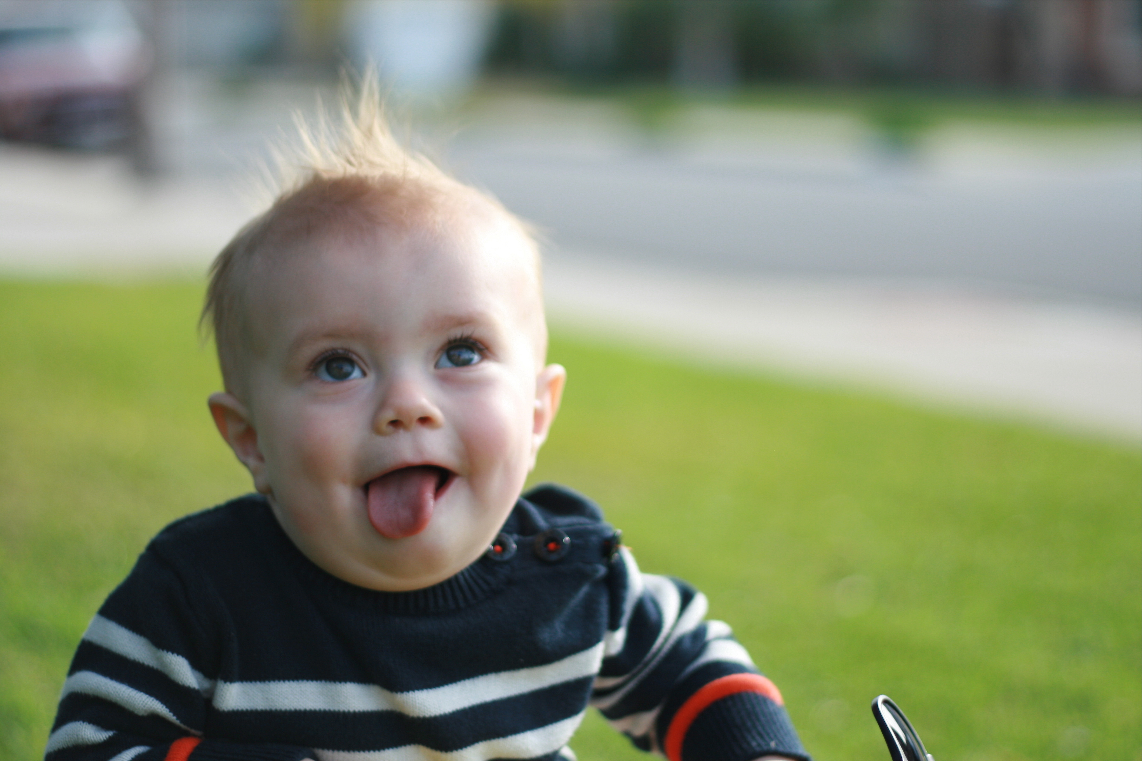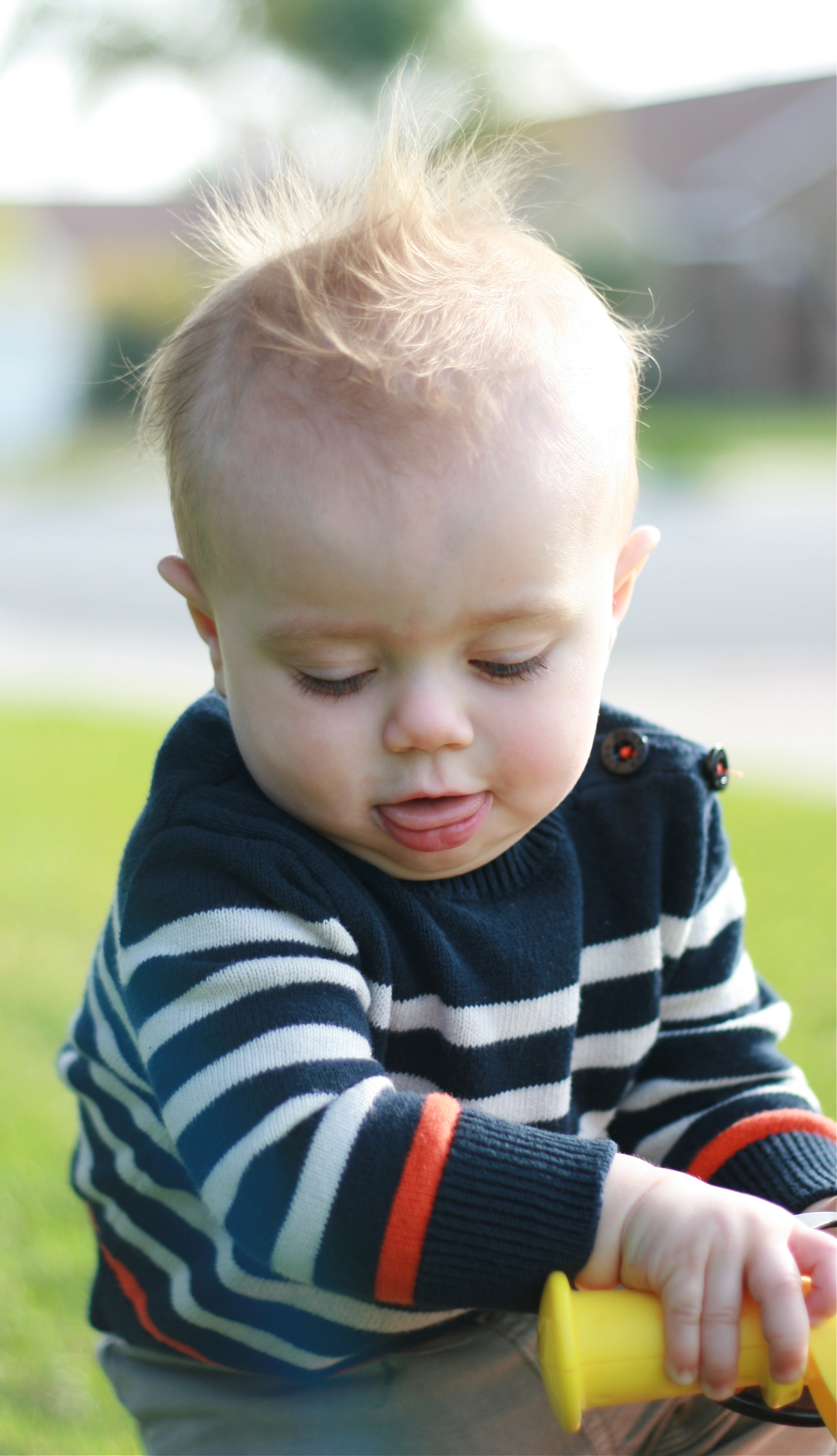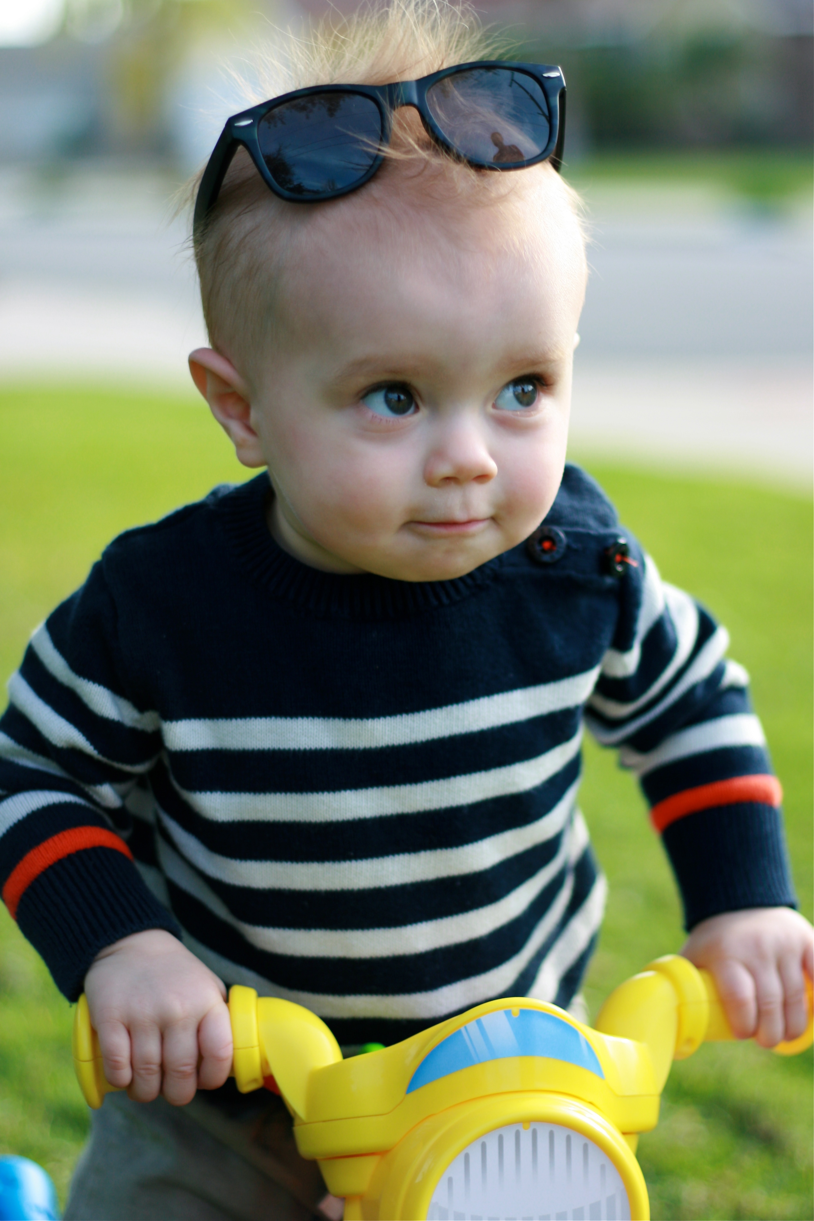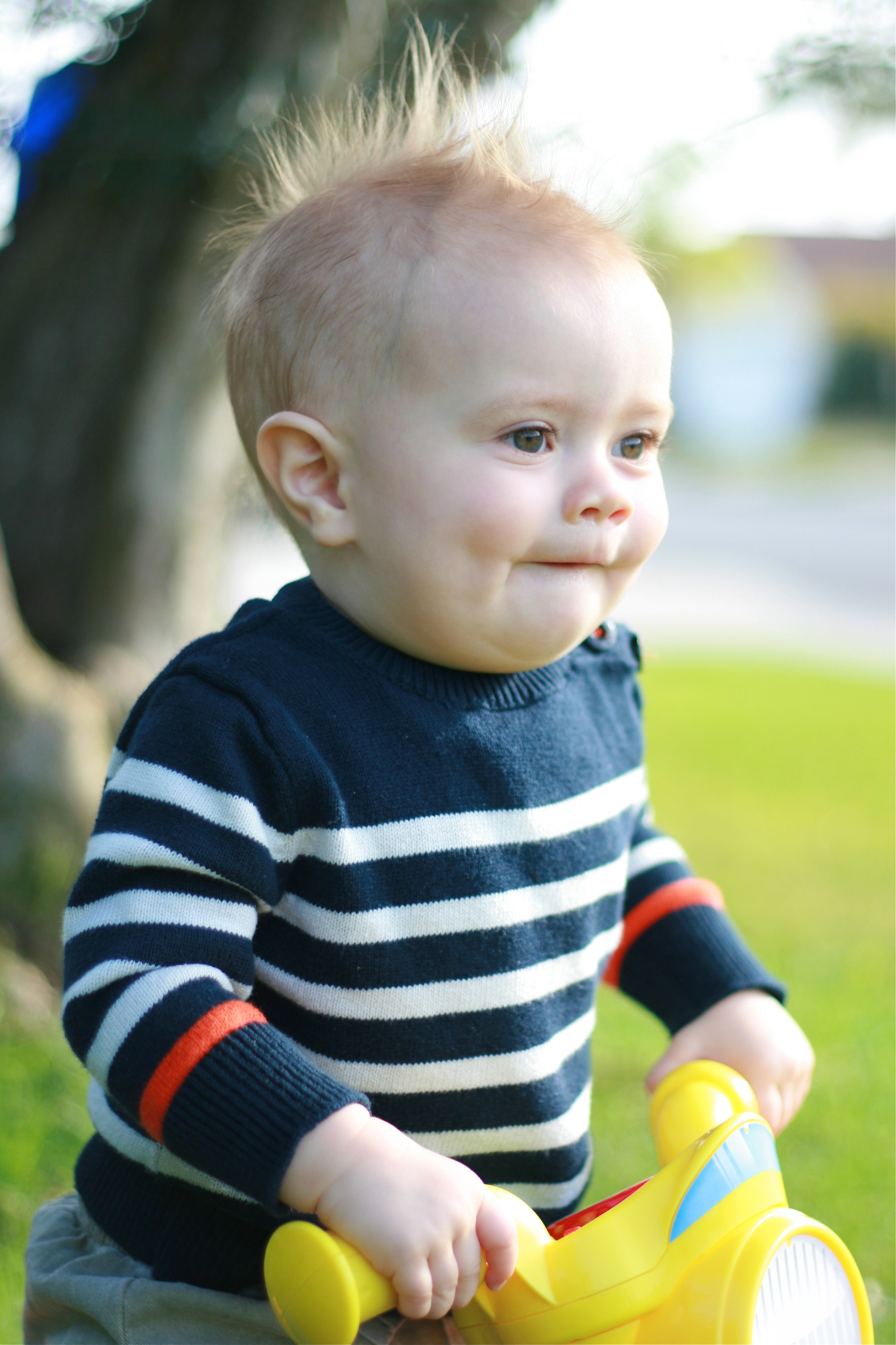I tried to catch some “sun mohawks” to capture this very cute stage of his hair growth. It really naturally makes a mohawk. Sometimes I put lotion on his head and “style” his hair with it. My mom likes to style it into a side part which is pretty cute and funny, too. Of course he will have to mess it up as soon as possible with his hand, and then put food on his head. Because why not?