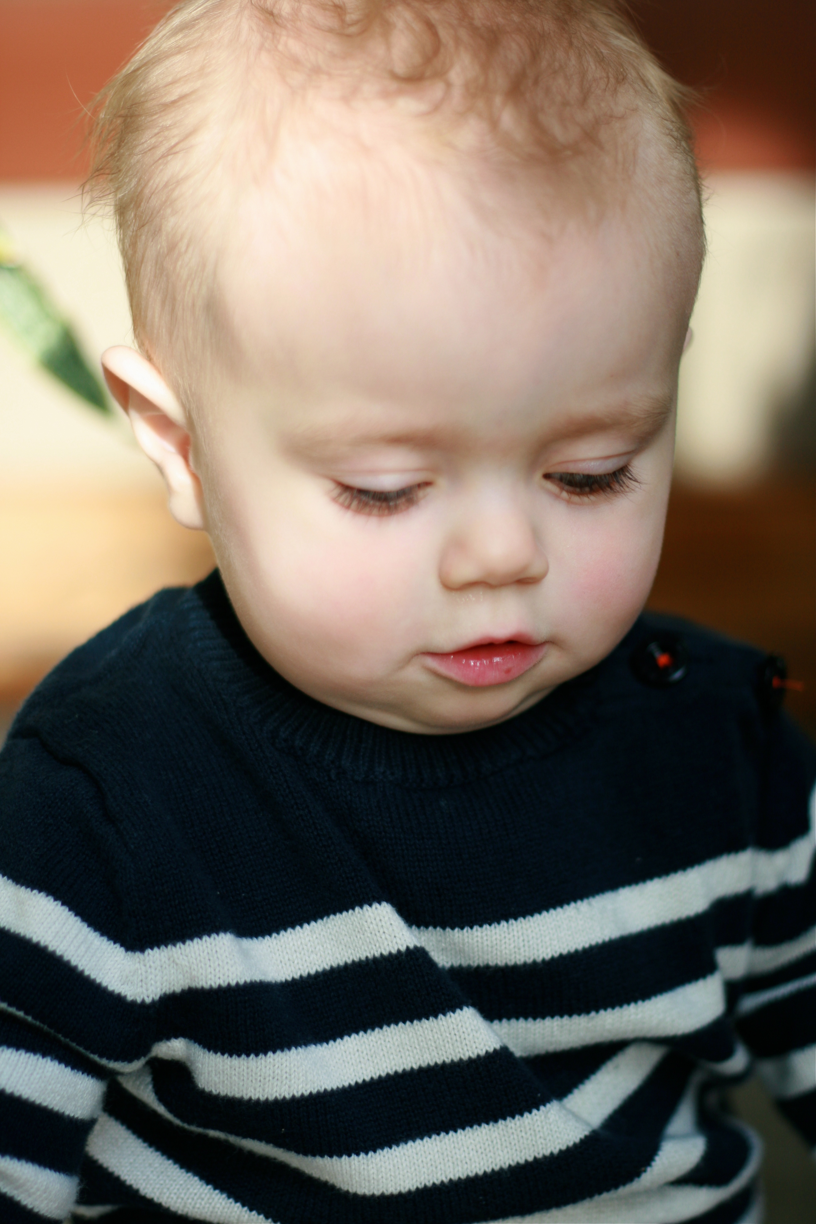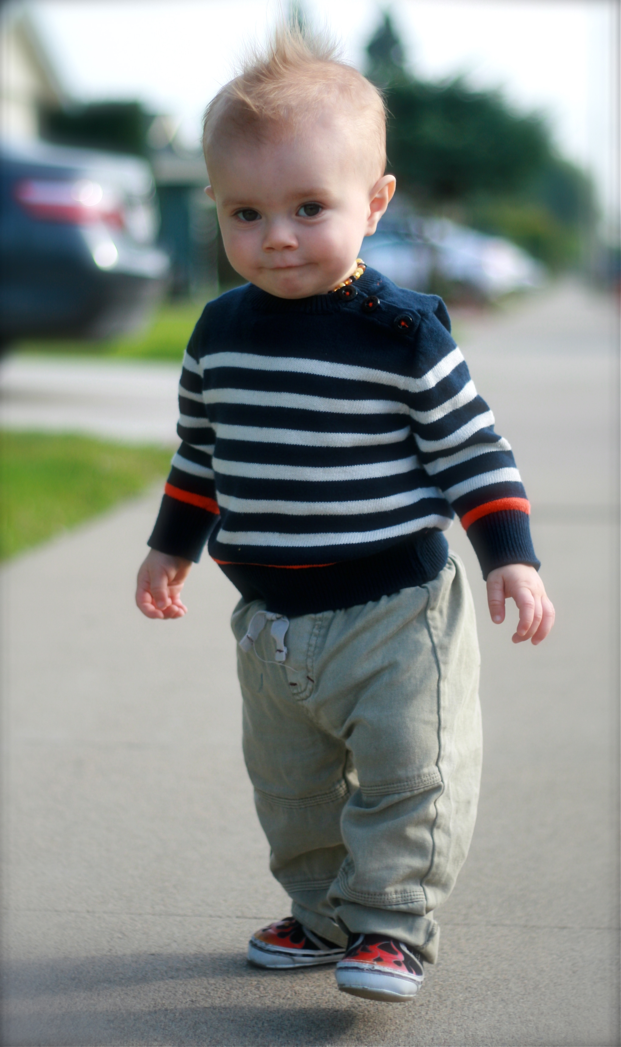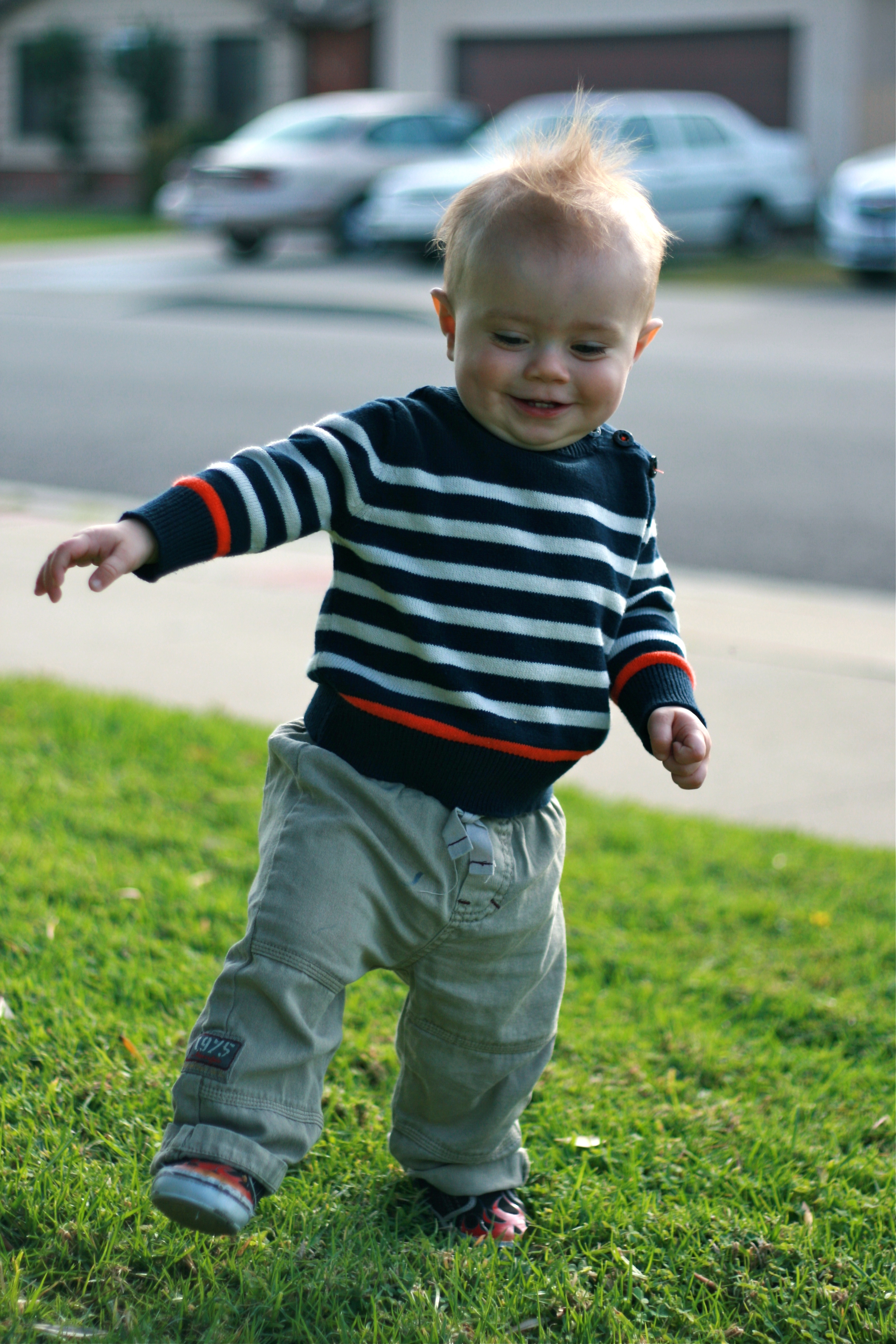It’s gotten so hard to take pictures of this guy. I mean, harder than ever. REALLY hard. He is non-stop on the move, exploring, touching things, breaking them, making a mess, throwing them all over. It’s a fast-paced world to follow him and explore having the attention span of a one-year-old (similar to that of a fly?). Everything at waist height to counter height can be subject to sticky little hands, drooly lips, and being thrown across the room. He will reach far above where he can see and pull things from the kitchen counter. Knives have to be pushed far beyond his reach. Cups of water are safe almost no where.