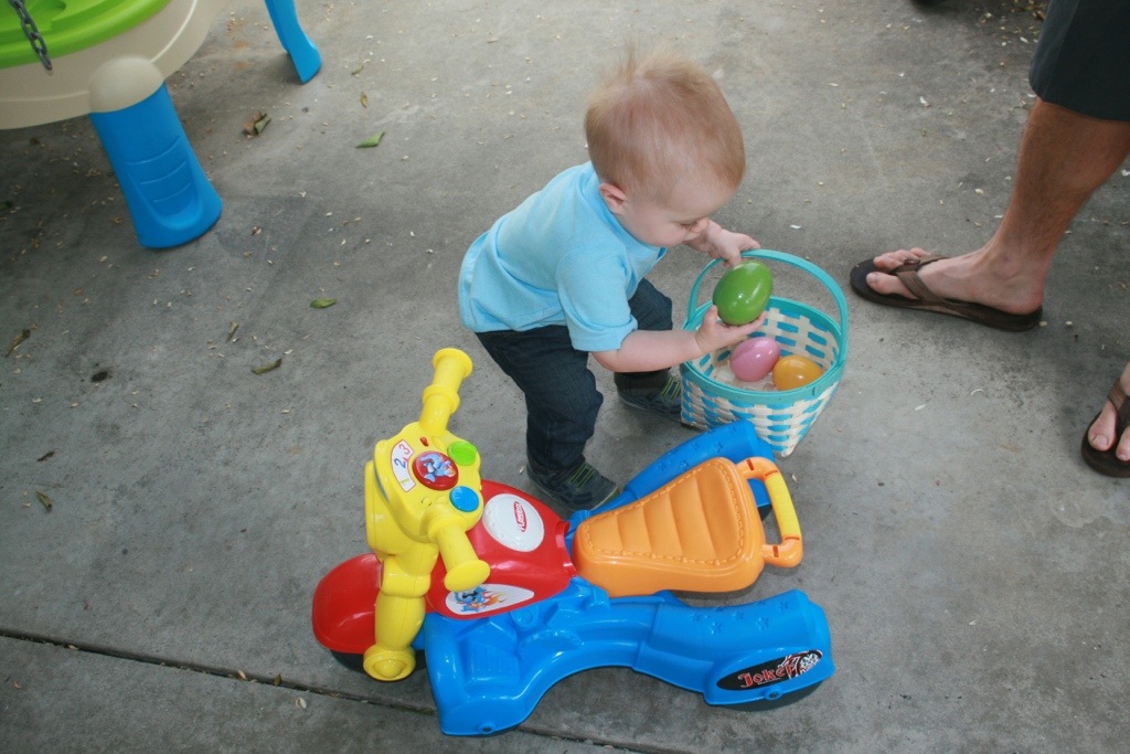 We started the day with eggs and basin cooked by Josh. Jacob napped, found his basket, searched for eggs, and we went on a family bike ride. Then we went to my parents’ house for more egg finding, family, food and fun.