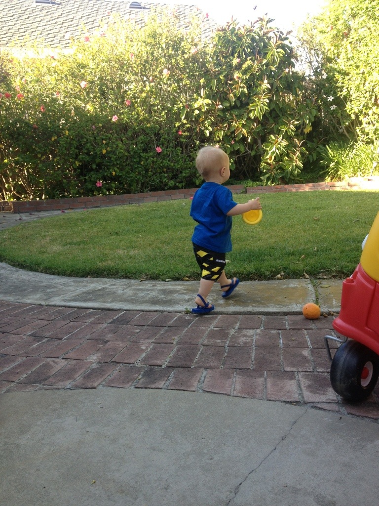 This entry was posted in daily baby, Uncategorized and tagged 16 months, baby, baseball hat, boardshorts, flip flops, go blue, one year old, sandals, swim diaper, tie die, walking. Bookmark the permalink.
