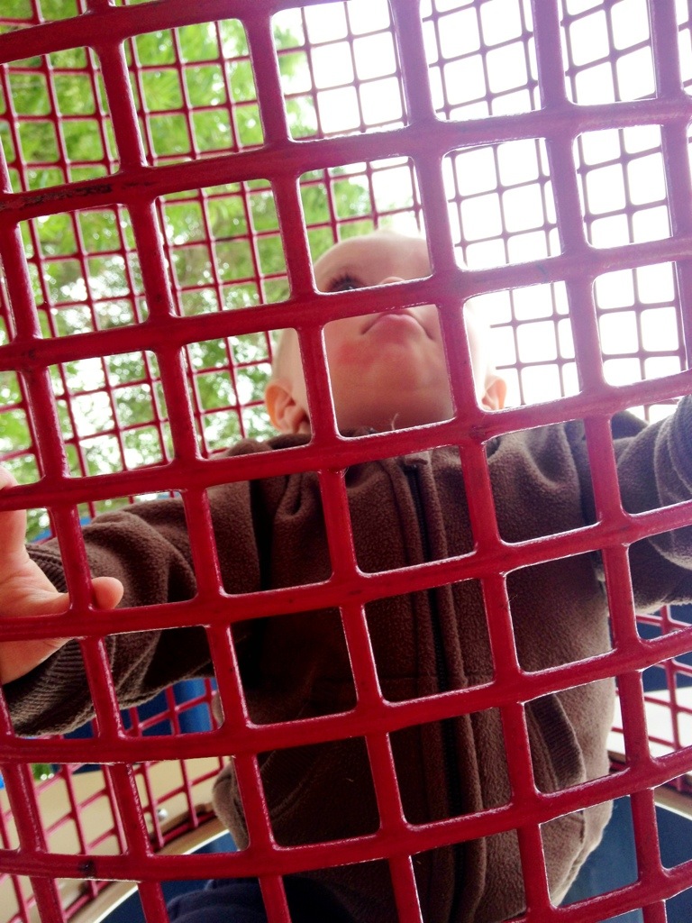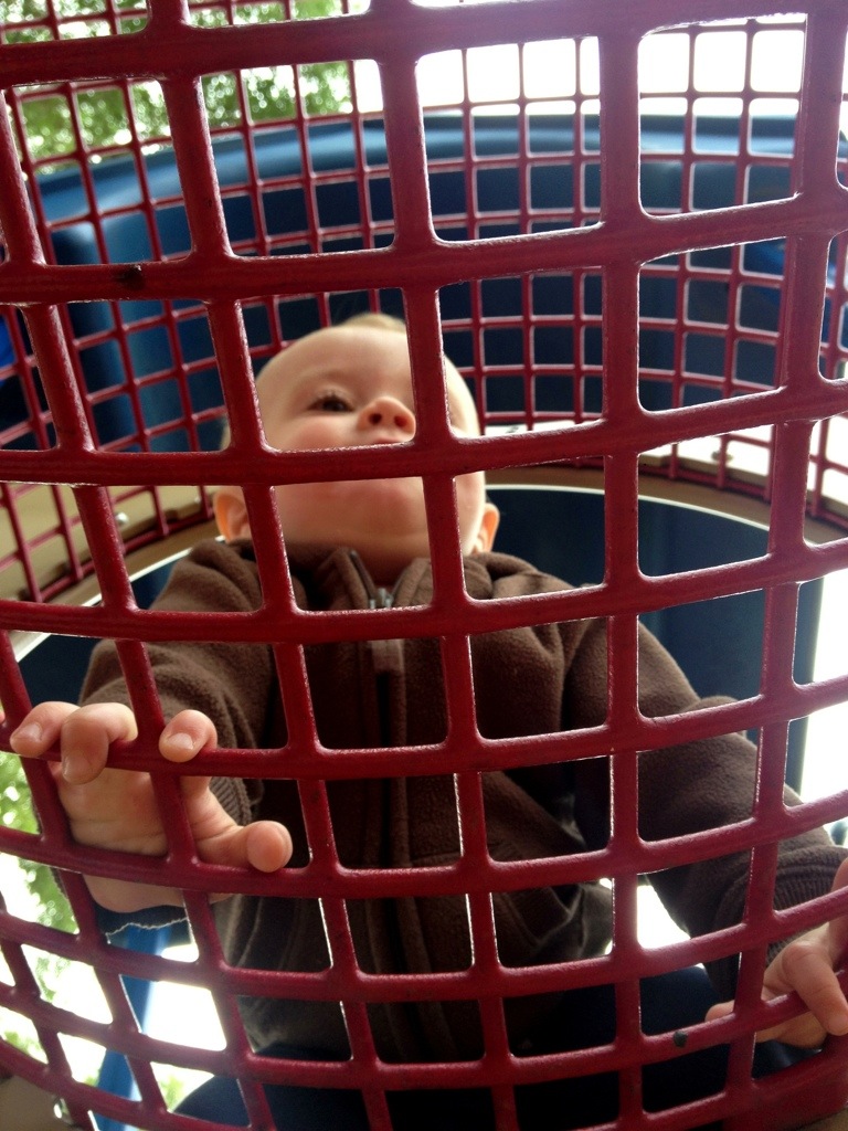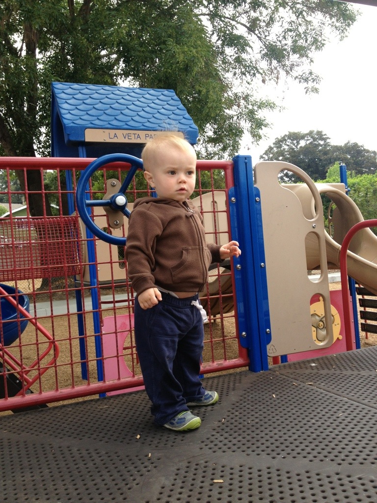 I think that our parenting style has created a very independent child. He never had to worry or fear separation and so he doesn’t. He just … does his own things. He isn’t quite big enough for playgrounds yet but he loves them. On this particular day, he was ready to go down all the slides by himself. He wouldn’t even accept my help climbing off of them. When he really got stuck he would calmly call out to me, holding out his hand and then signing for me to help, but otherwise he only looked for me to make sure I saw him do something exciting. It was really cute but really … grown up. Bittersweet.
